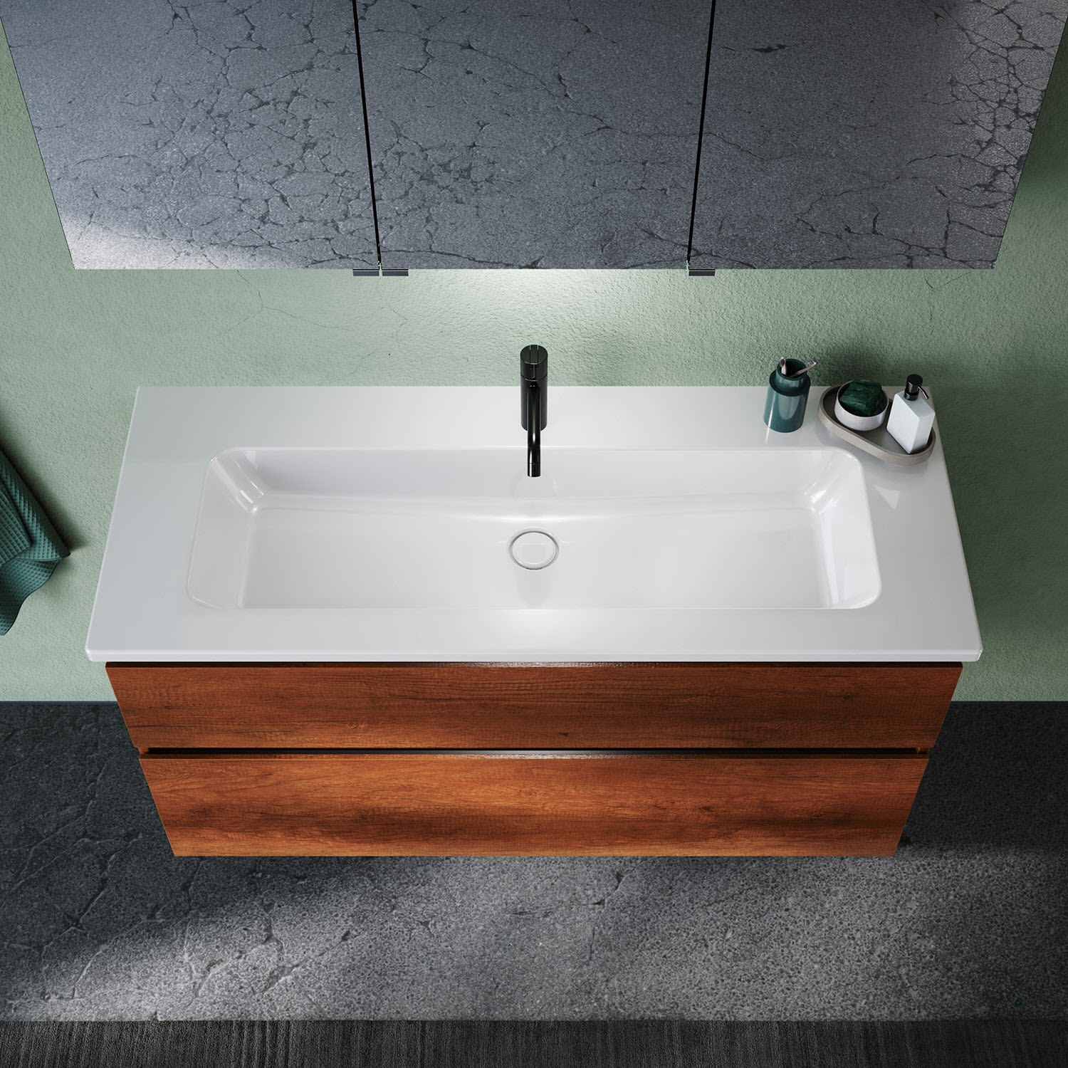 burgbad Lin20 Waschtischunterschrank mit Keramik-Waschtisch 123 cm, 2 Auszüge