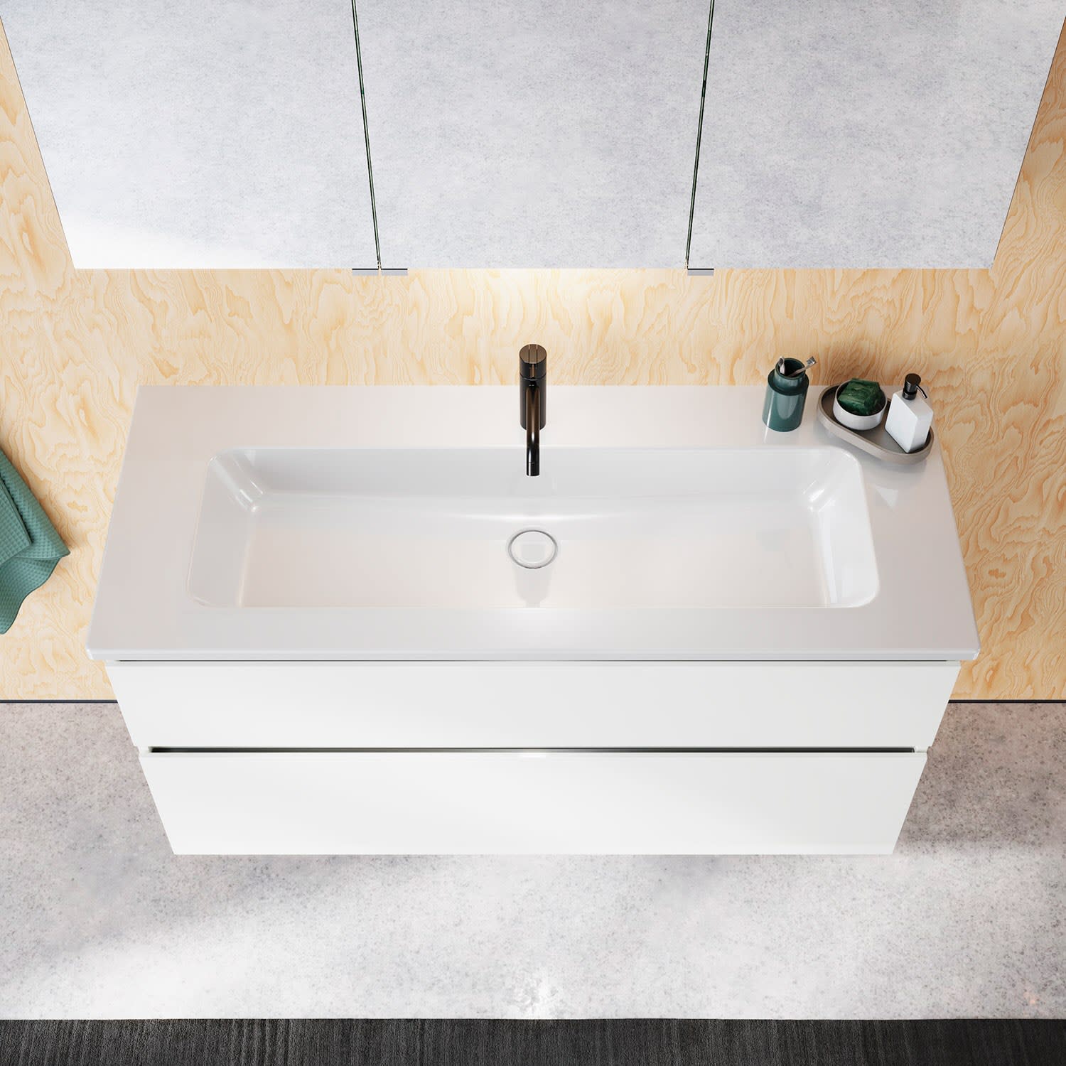 burgbad Lin20 Waschtischunterschrank mit Keramik-Waschtisch 123 cm, 2 Auszüge