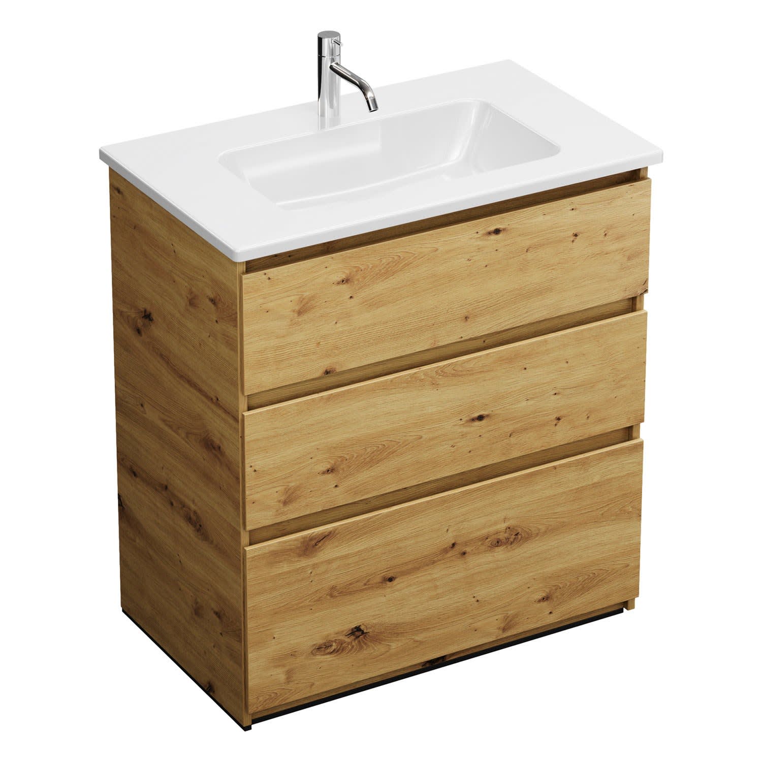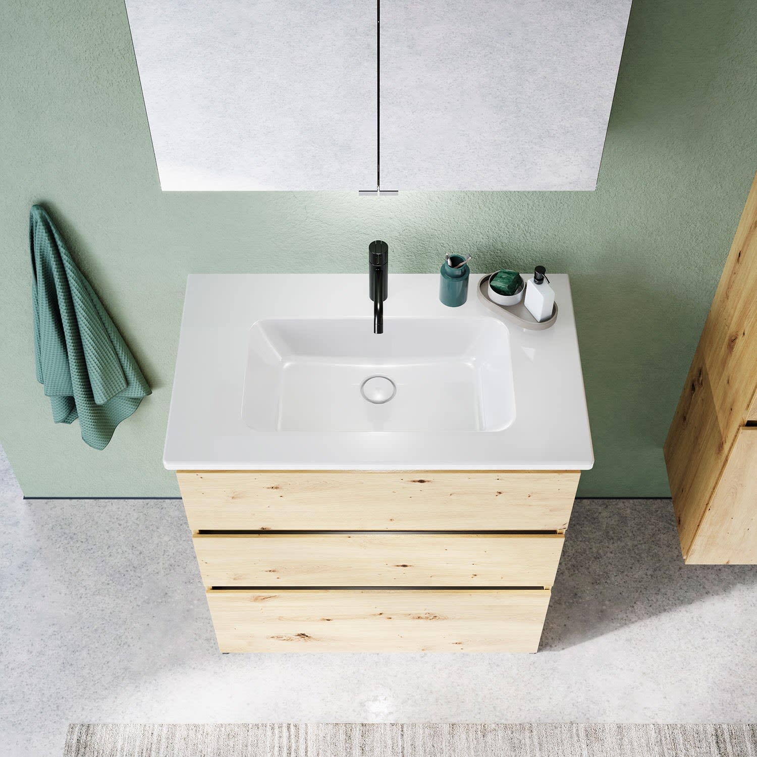 burgbad Lin20 Waschtischunterschrank mit Keramik-Waschtisch 83 cm, 3 Auszüge