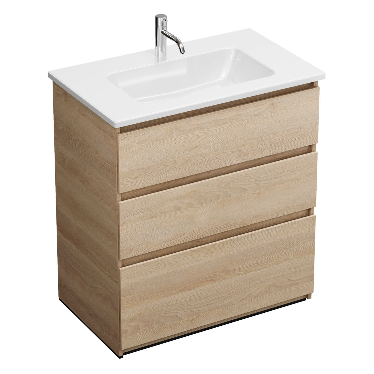 burgbad Lin20 Waschtischunterschrank mit Keramik-Waschtisch 83 cm, 3 Auszüge