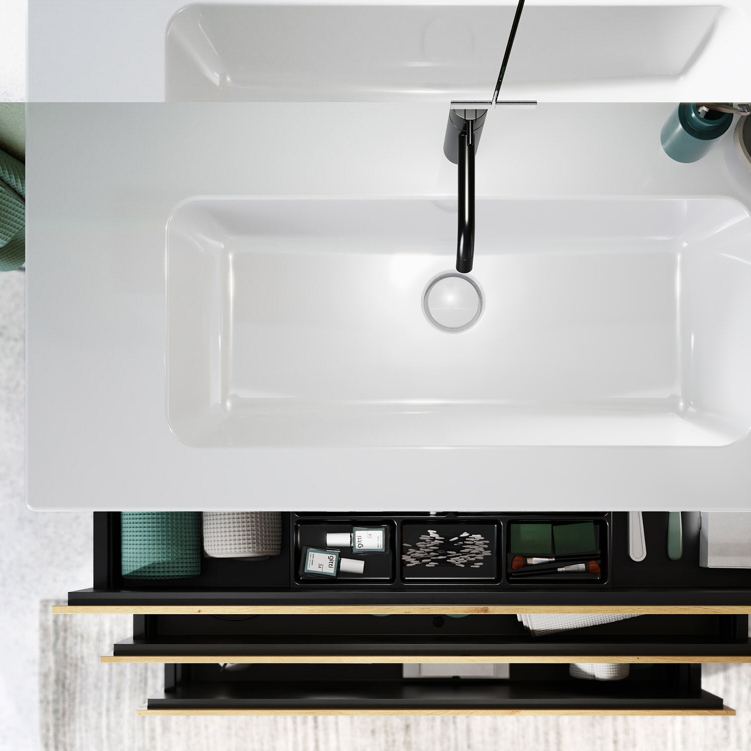 - inkl. verdecktem Ab- und Überlaufsystem, absperrbar