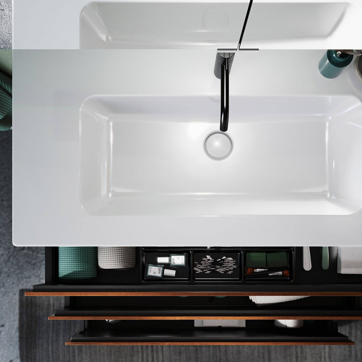 - inkl. verdecktem Ab- und Überlaufsystem, absperrbar