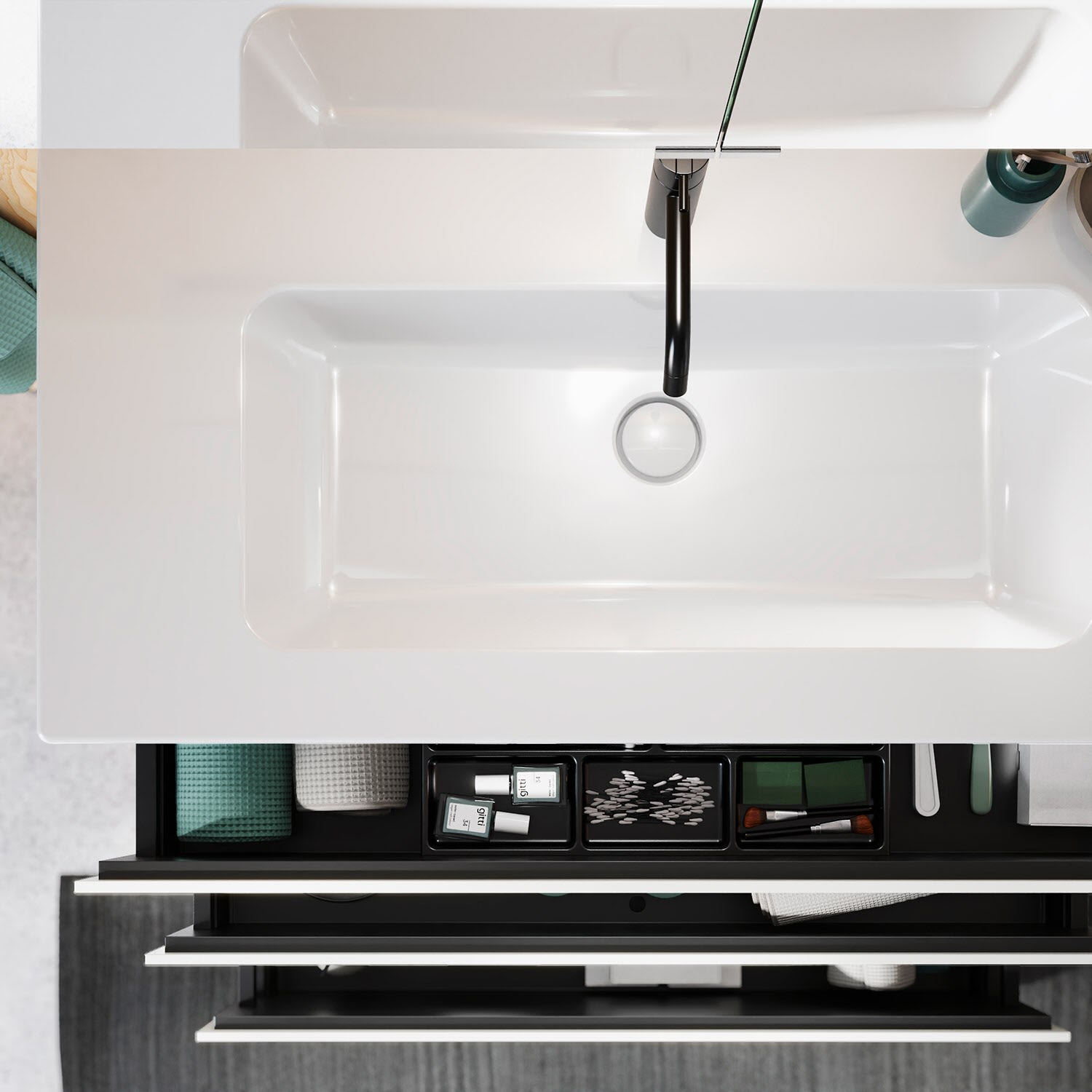 - inkl. verdecktem Ab- und Überlaufsystem, absperrbar