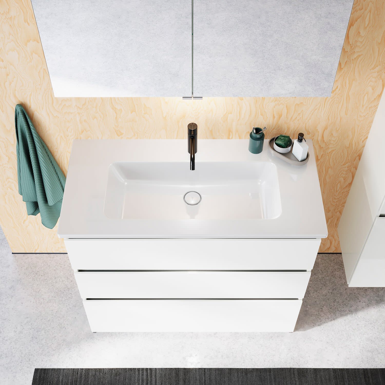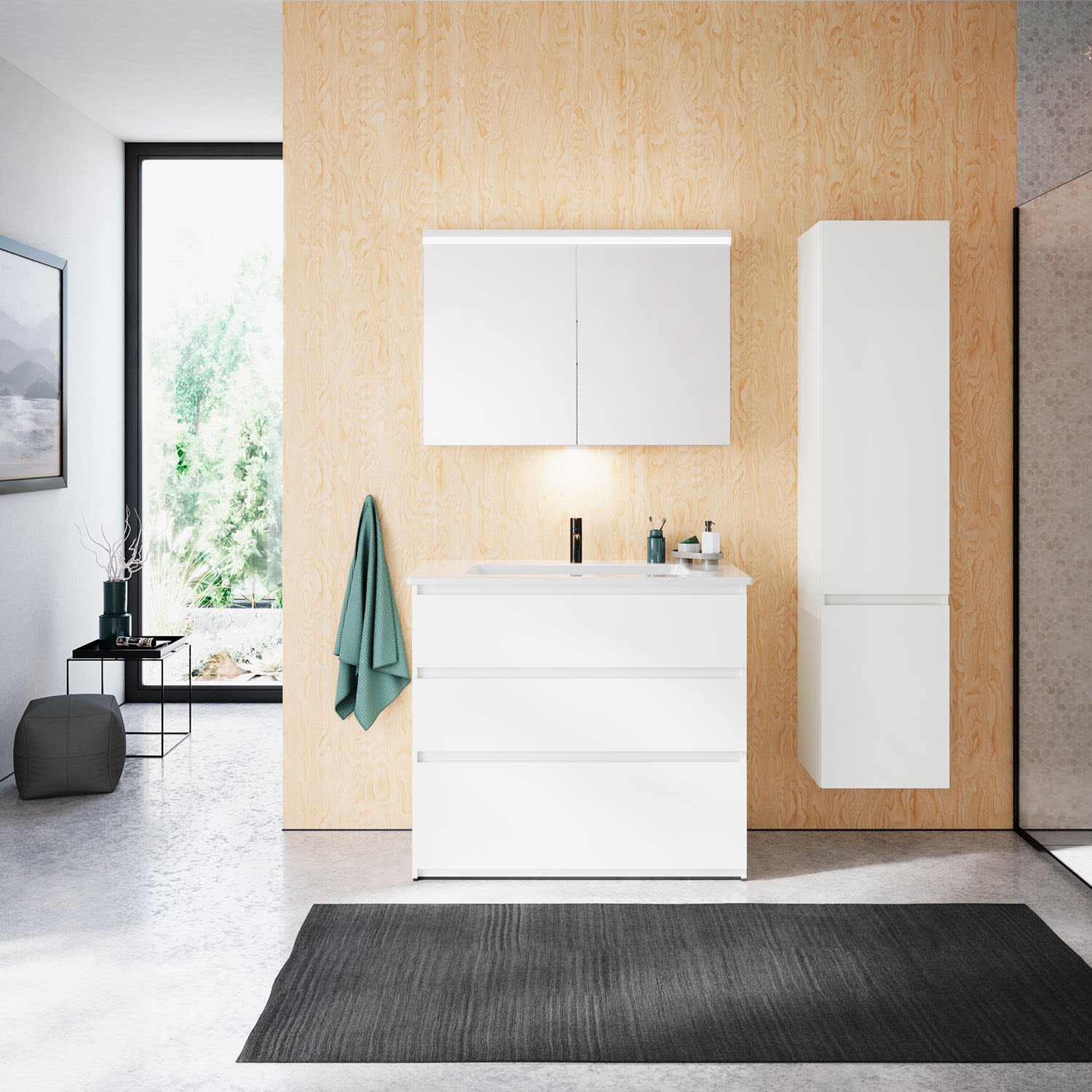 burgbad Lin20 Waschtischunterschrank mit Keramik-Waschtisch 103 cm, 3 Auszüge