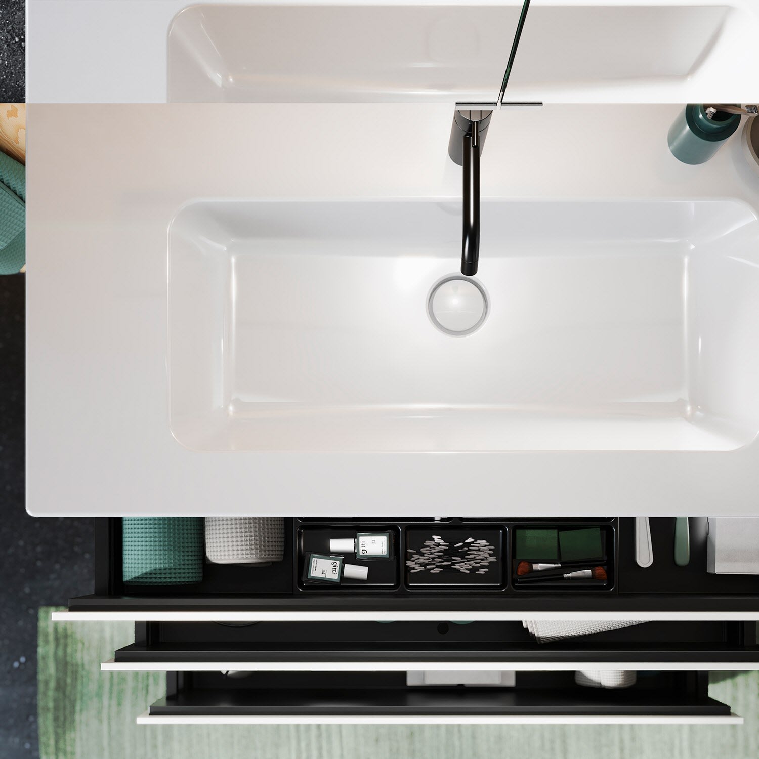 - inkl. verdecktem Ab- und Überlaufsystem, absperrbar