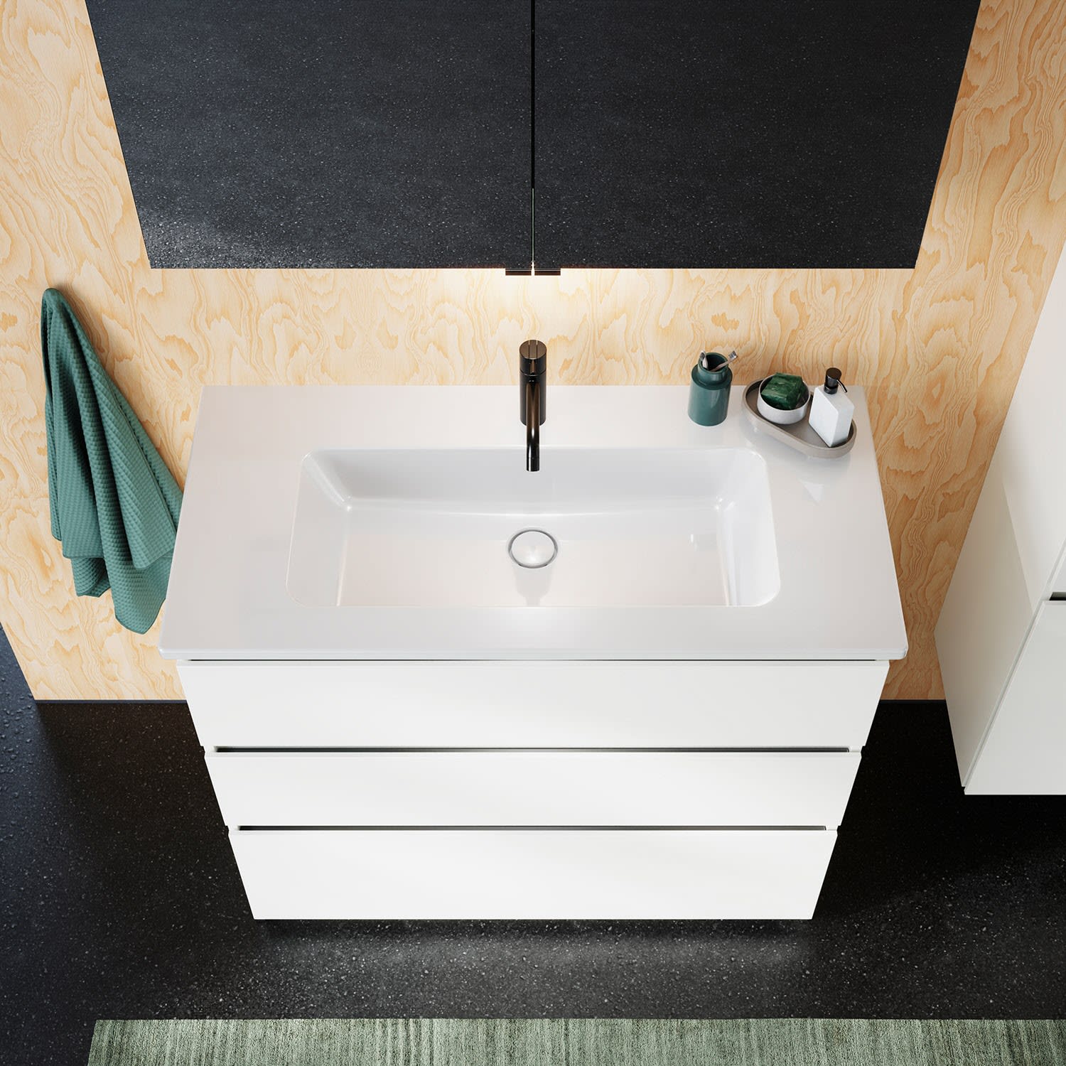 burgbad Lin20 Waschtischunterschrank mit Keramik-Waschtisch 103 cm, 3 Auszüge