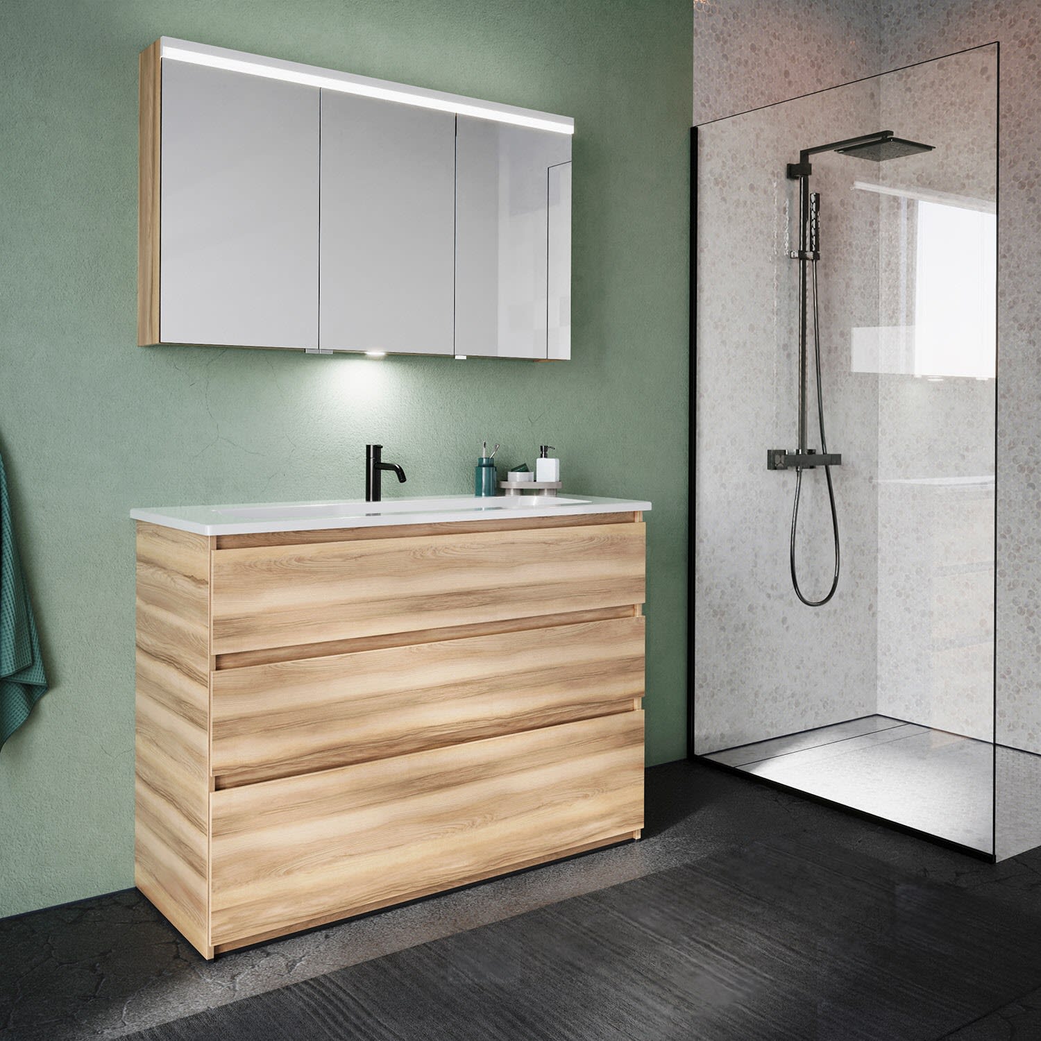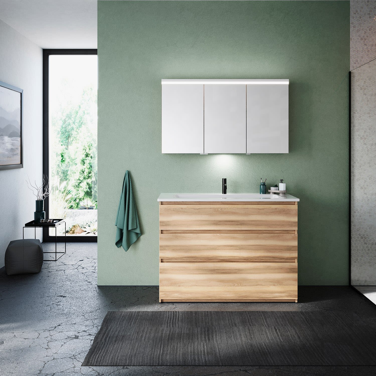 burgbad Lin20 Waschtischunterschrank mit Keramik-Waschtisch 123 cm, 3 Auszüge