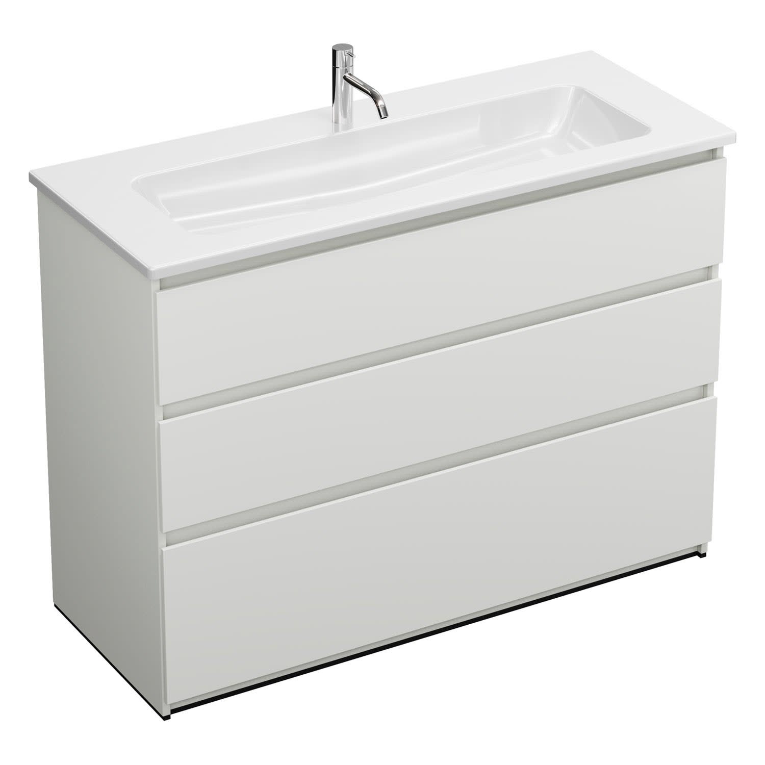 burgbad Lin20 Waschtischunterschrank mit Keramik-Waschtisch 123 cm, 3 Auszüge
