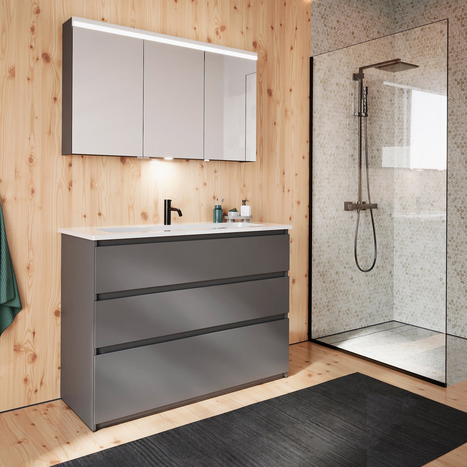 burgbad Lin20 Waschtischunterschrank mit Keramik-Waschtisch 123 cm, 3 Auszüge