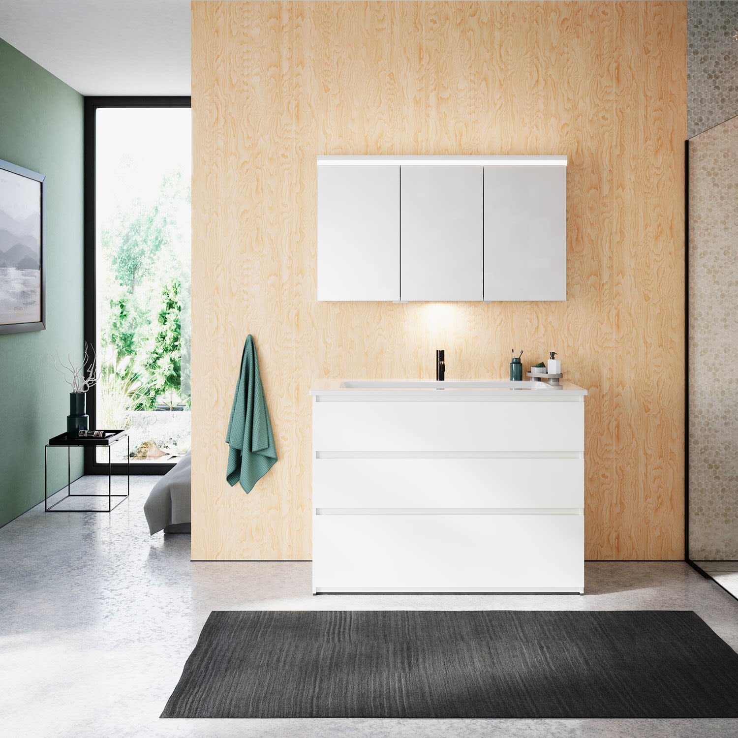 burgbad Lin20 Waschtischunterschrank mit Keramik-Waschtisch 123 cm, 3 Auszüge