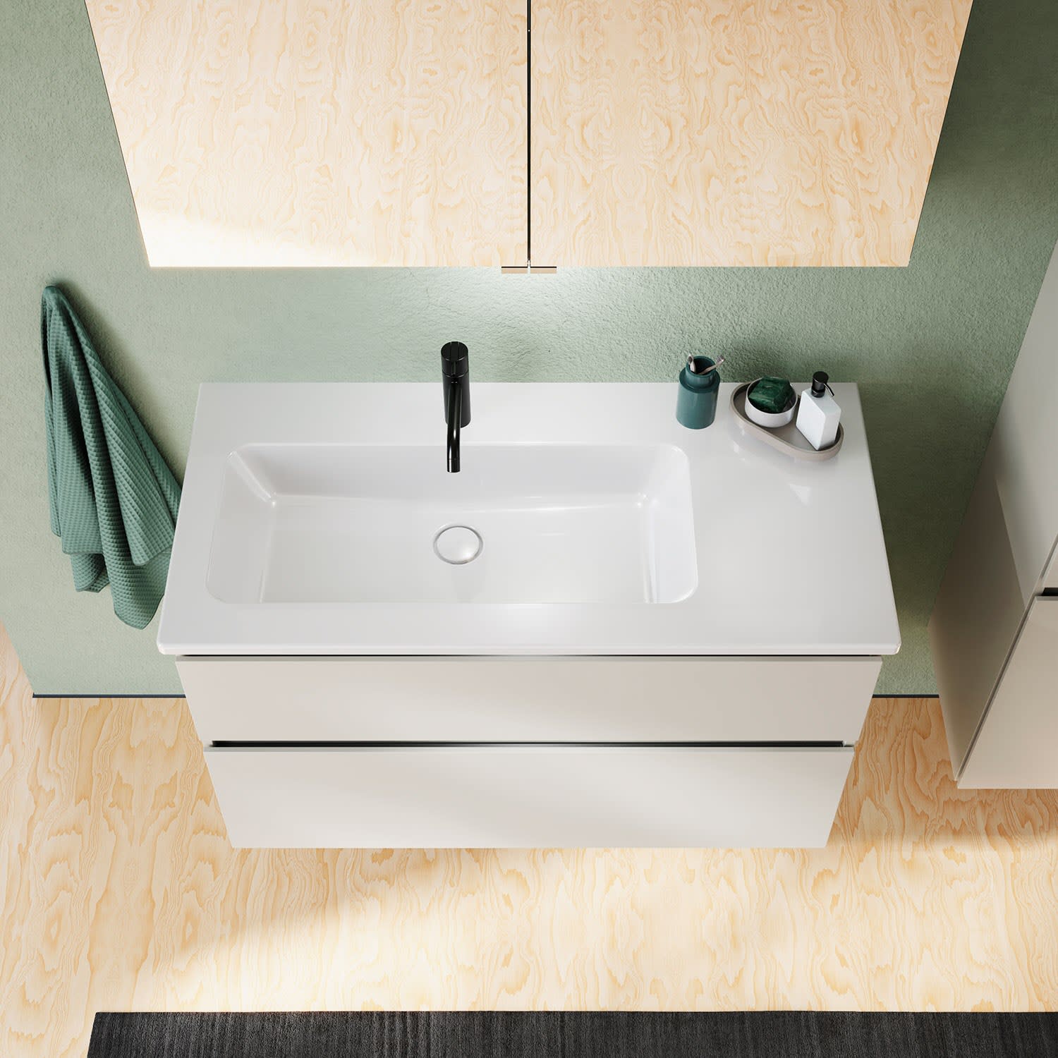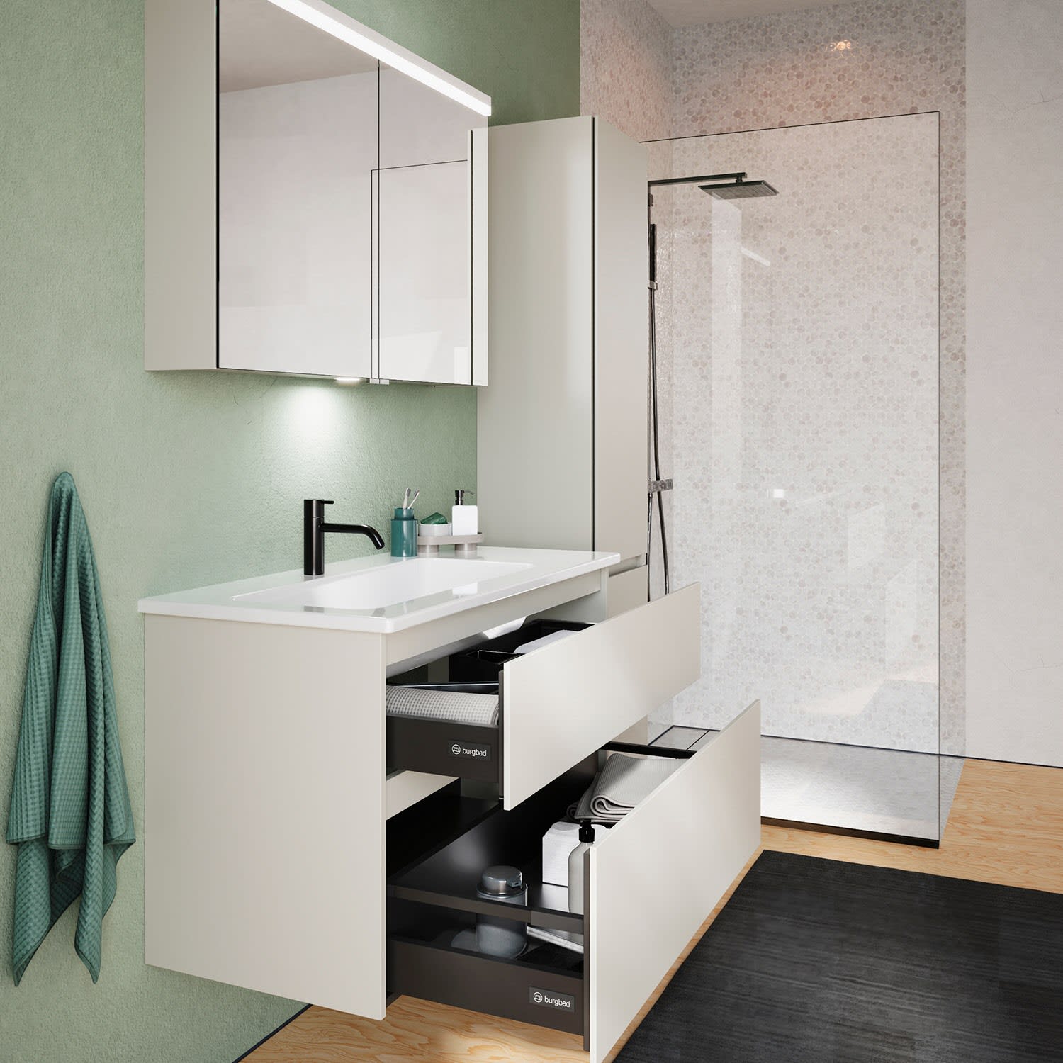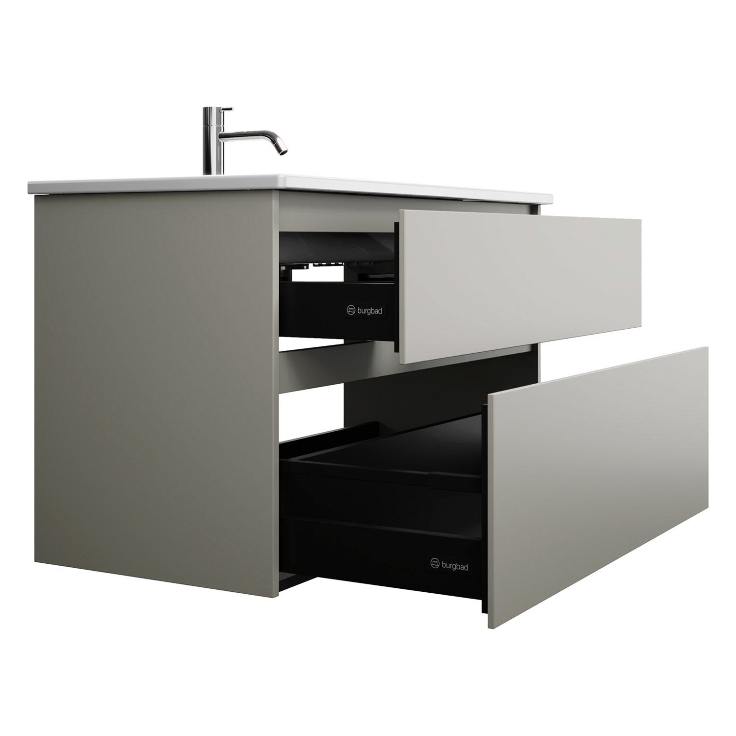 burgbad Lin20 Waschtischunterschrank mit Keramik-Waschtisch 103 cm, 2 Auszüge, links