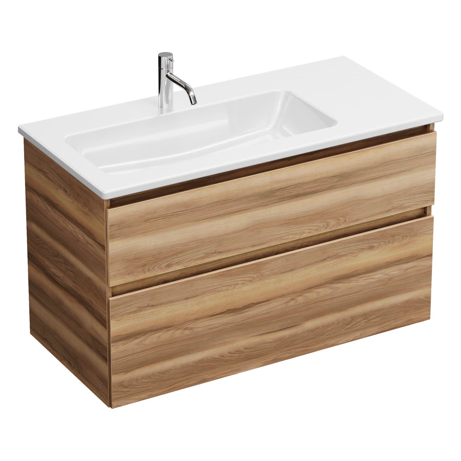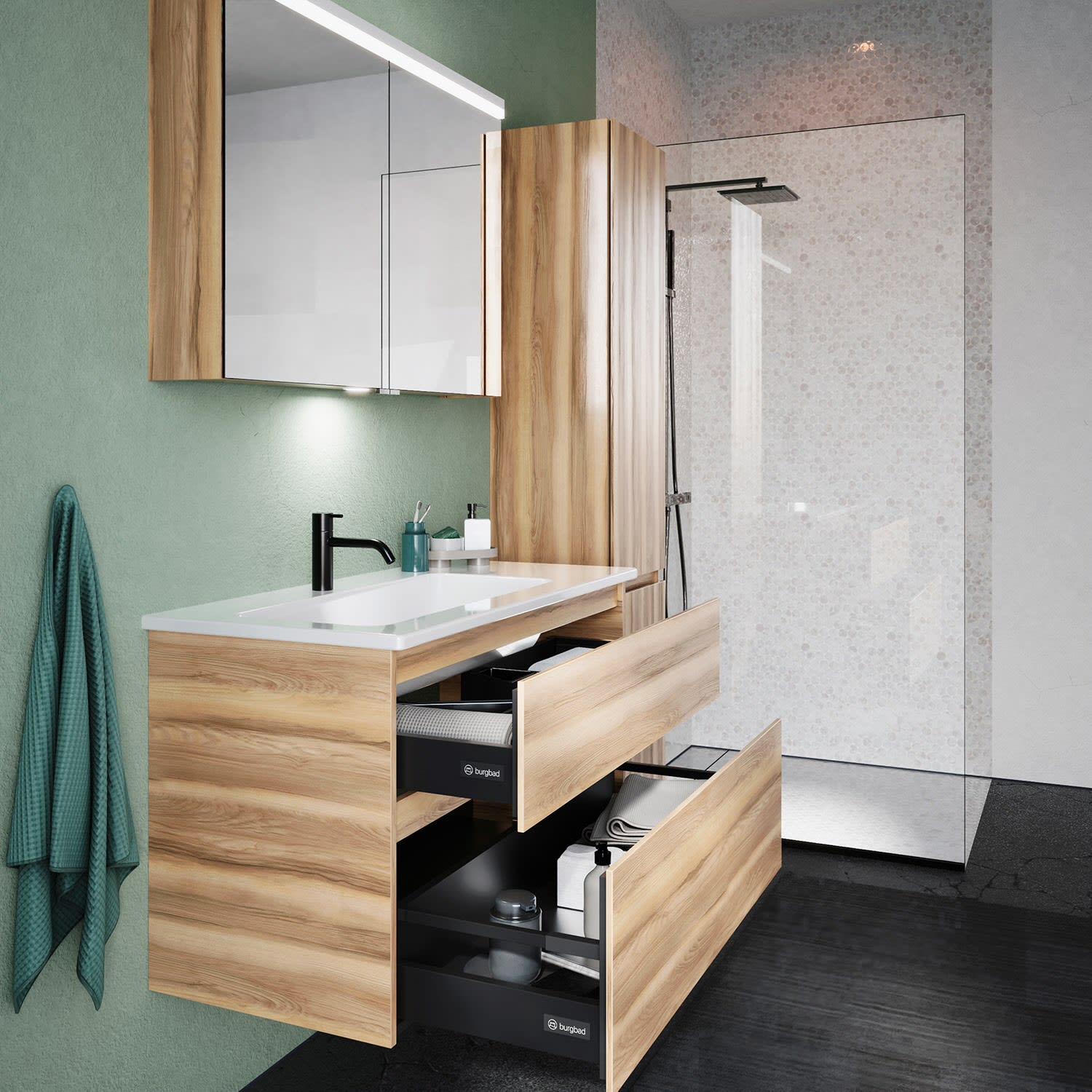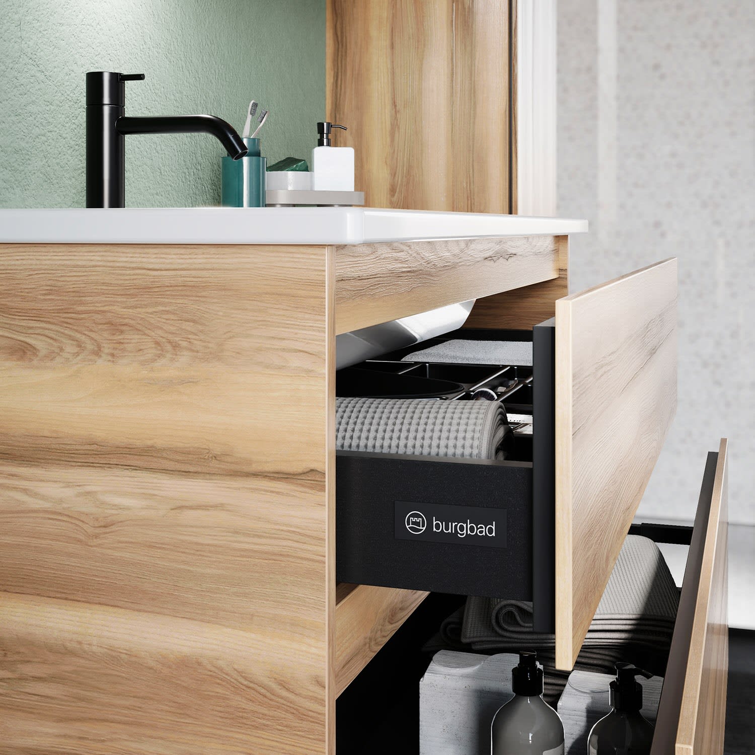 burgbad Lin20 Waschtischunterschrank mit Keramik-Waschtisch 103 cm, 2 Auszüge, links