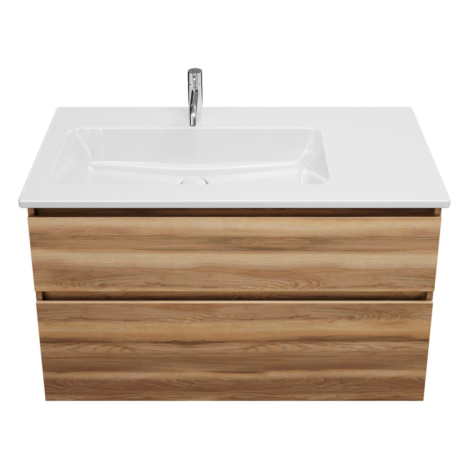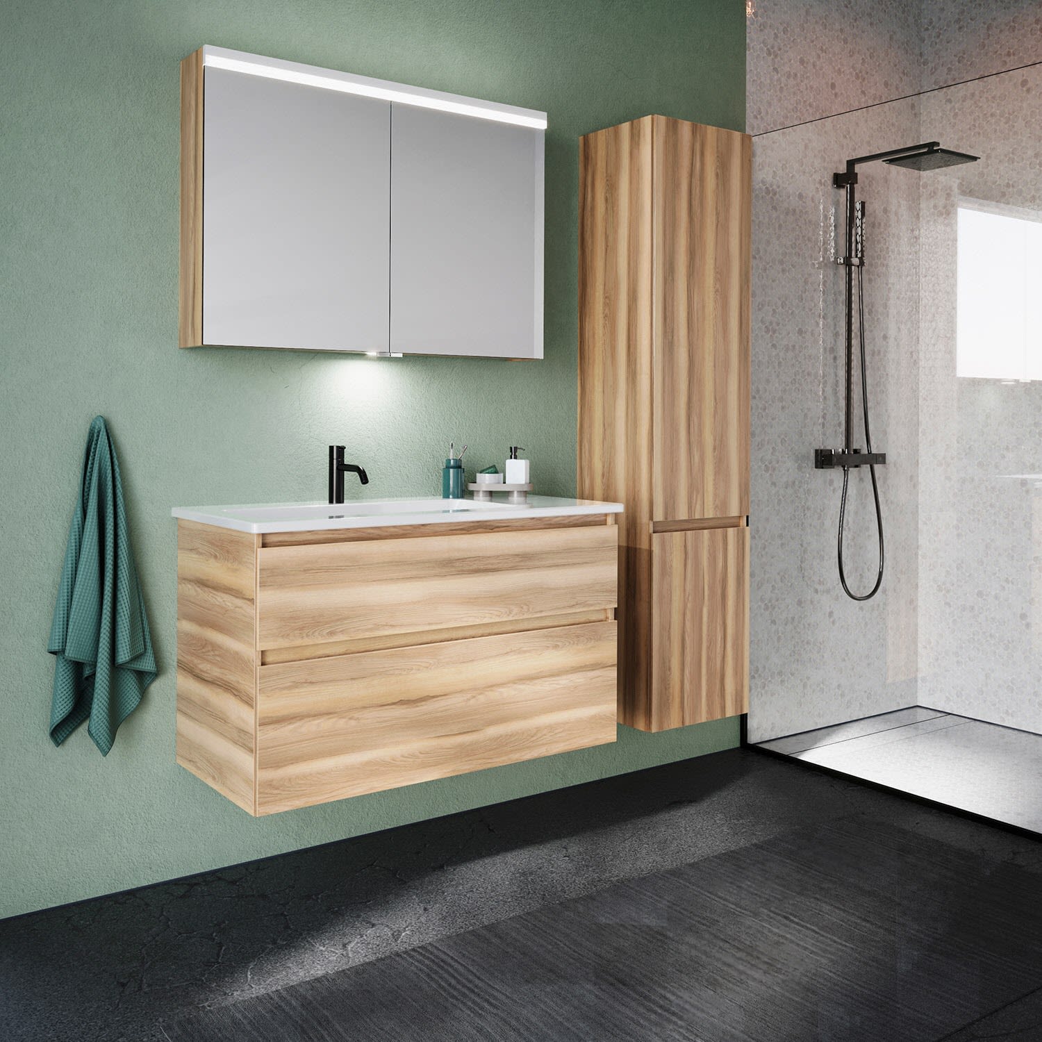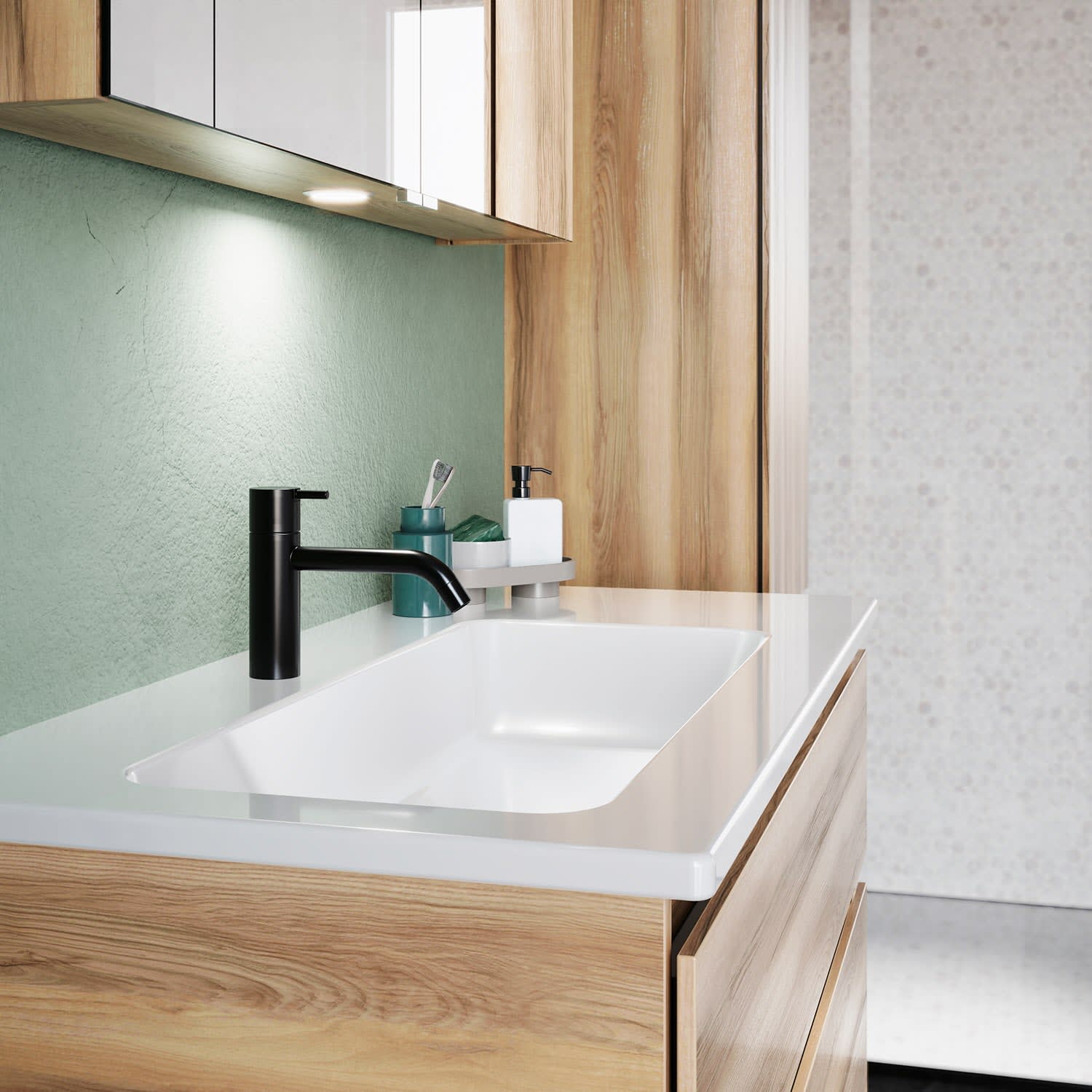 burgbad Lin20 Waschtischunterschrank mit Keramik-Waschtisch 103 cm, 2 Auszüge, links