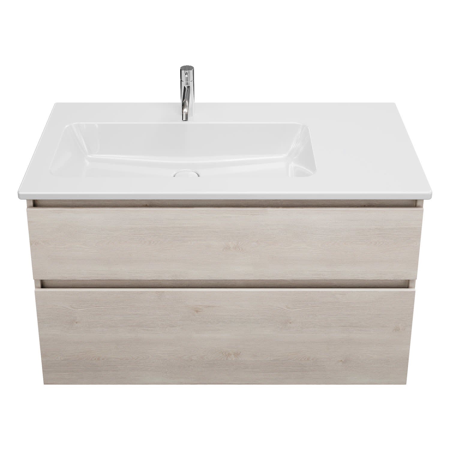 burgbad Lin20 Waschtischunterschrank mit Keramik-Waschtisch 103 cm, 2 Auszüge, links