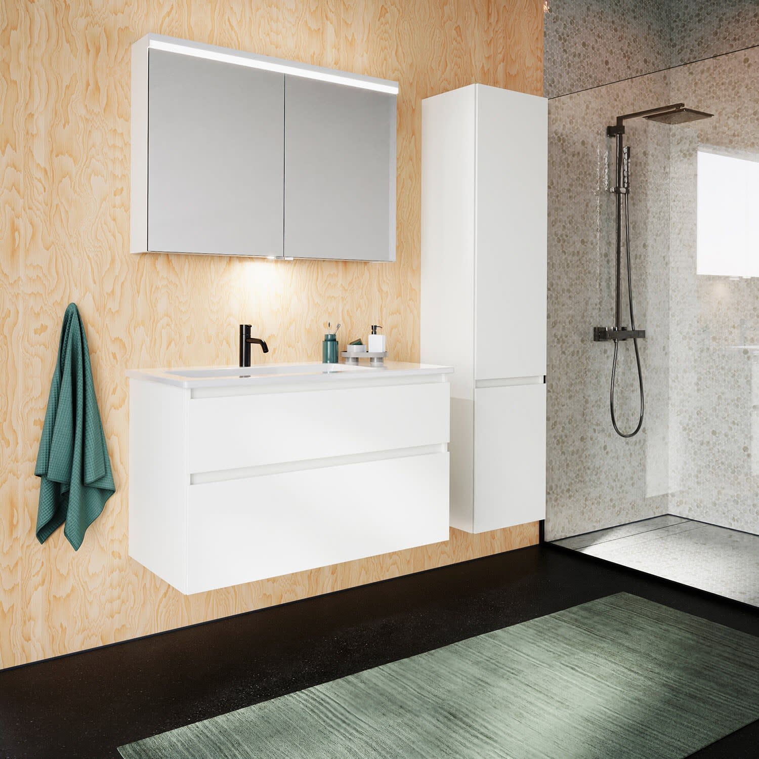 burgbad Lin20 Waschtischunterschrank mit Keramik-Waschtisch 103 cm, 2 Auszüge, links