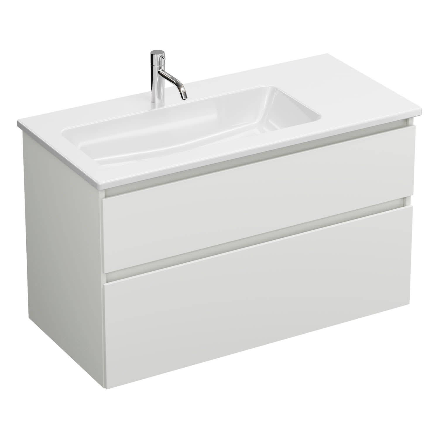 burgbad Lin20 Waschtischunterschrank mit Keramik-Waschtisch 103 cm, 2 Auszüge, links