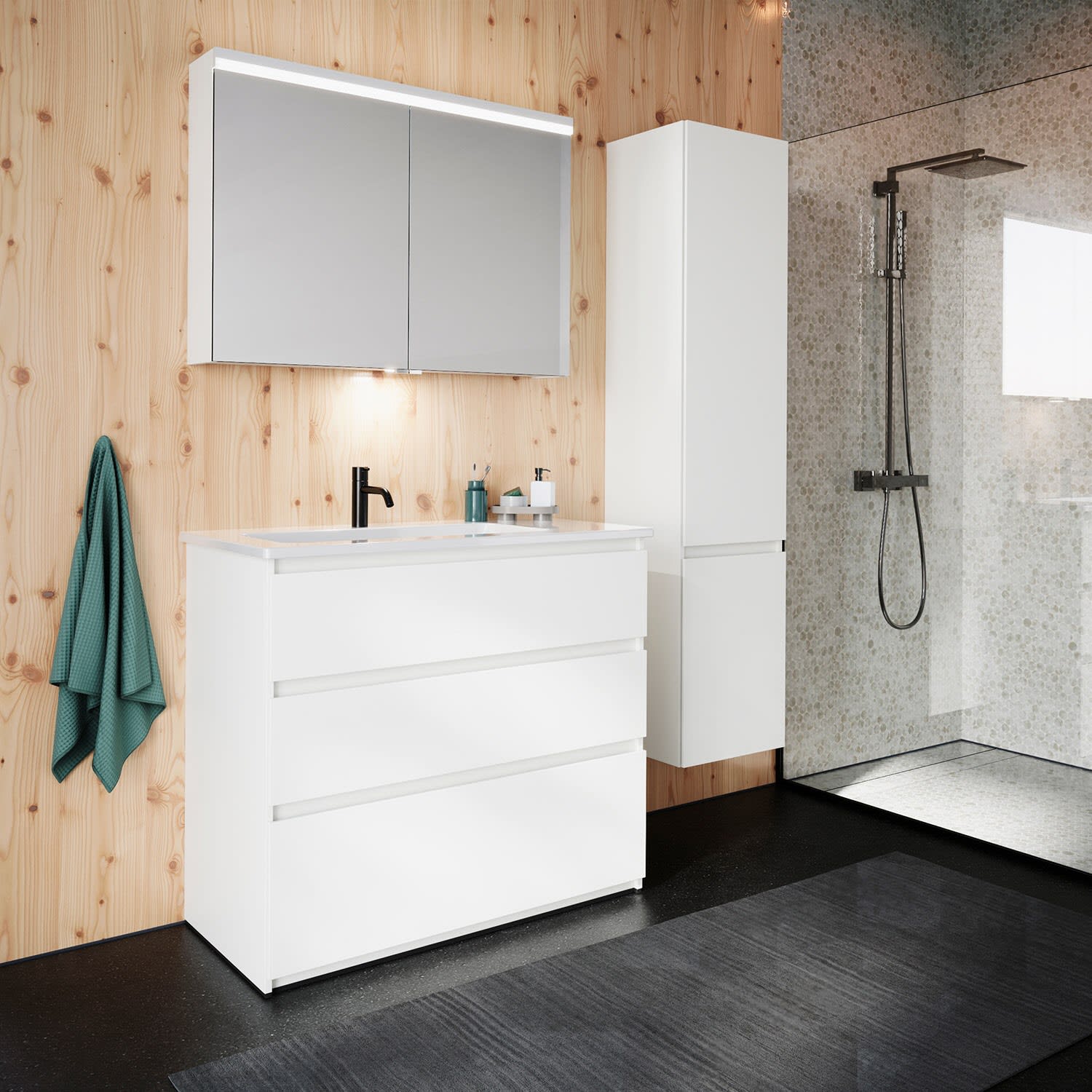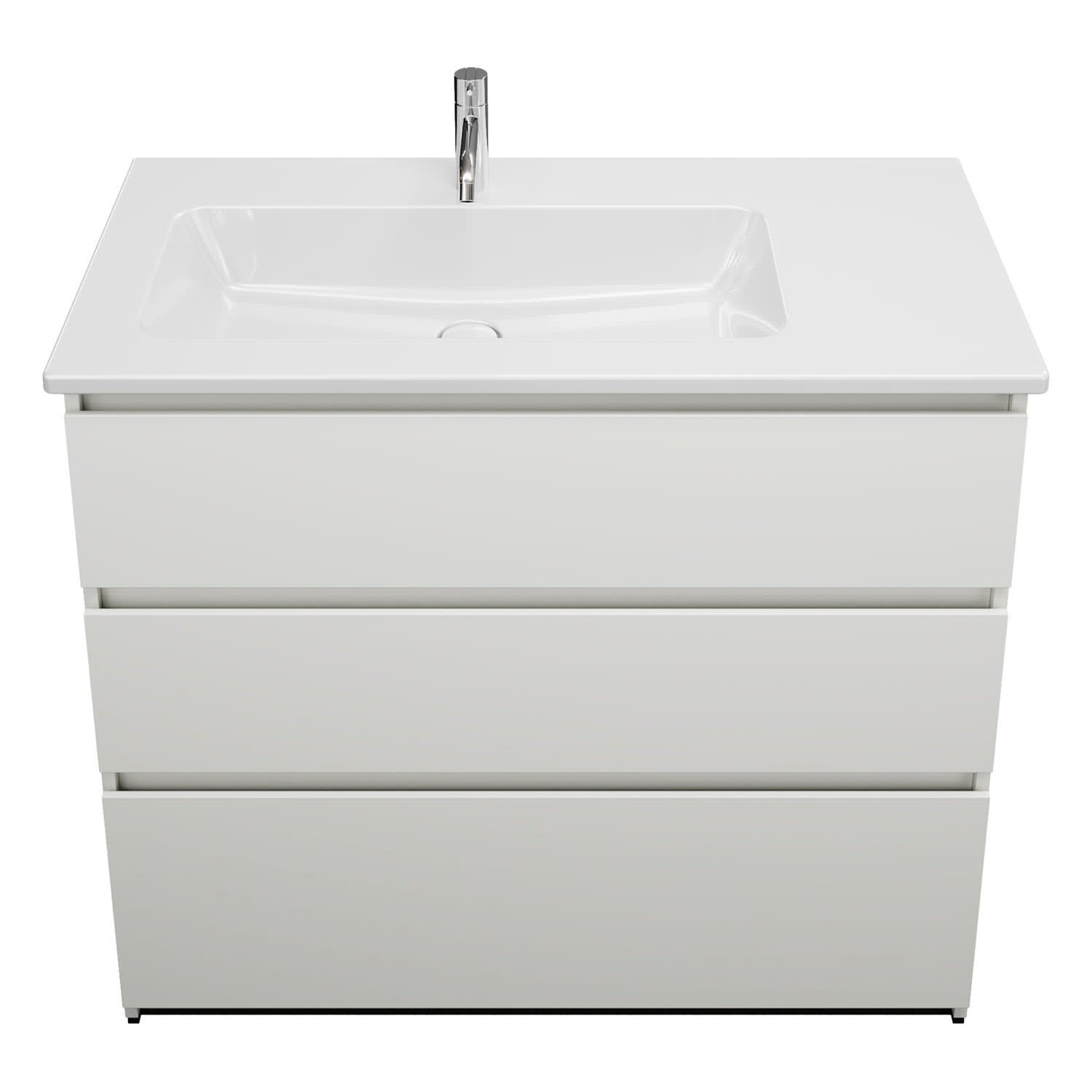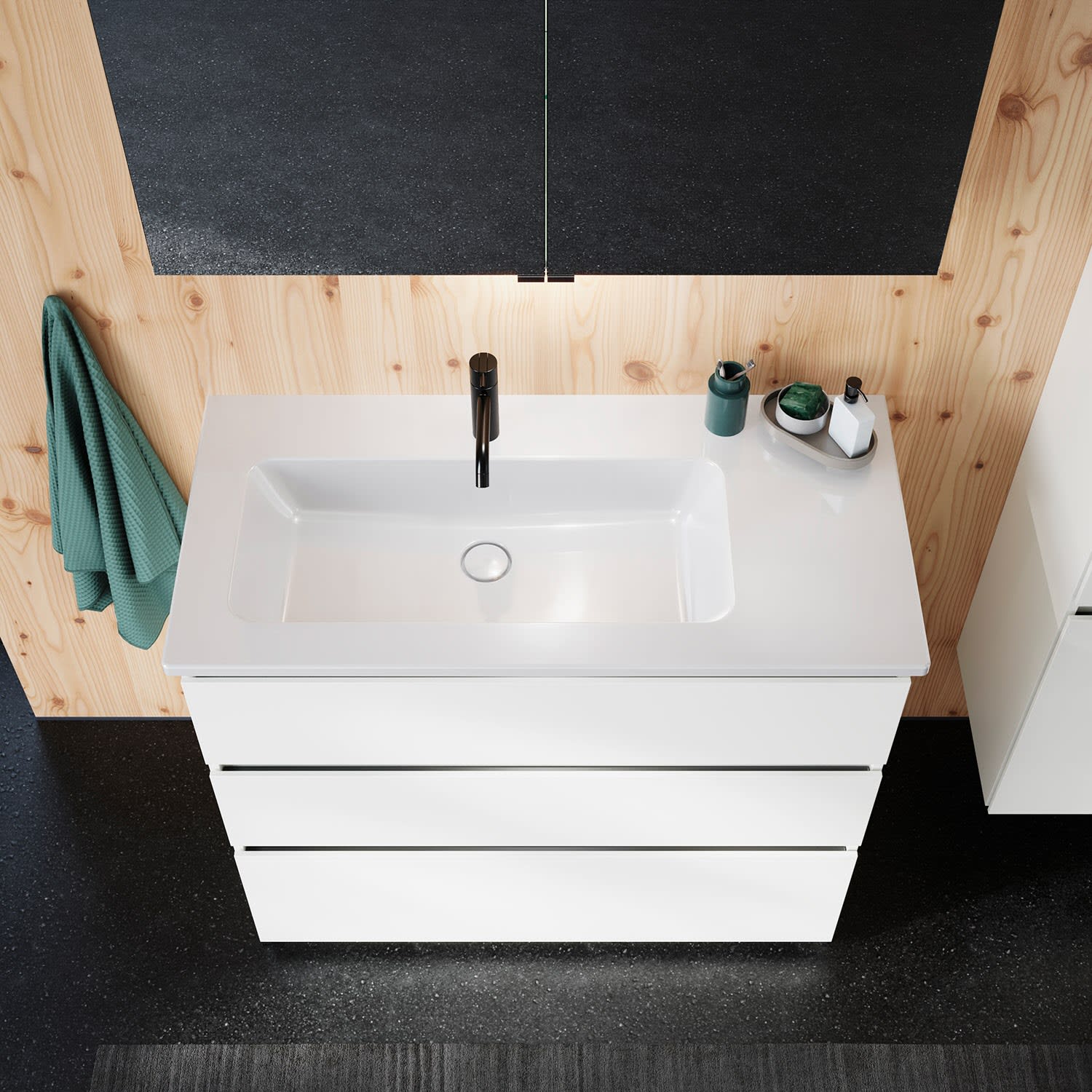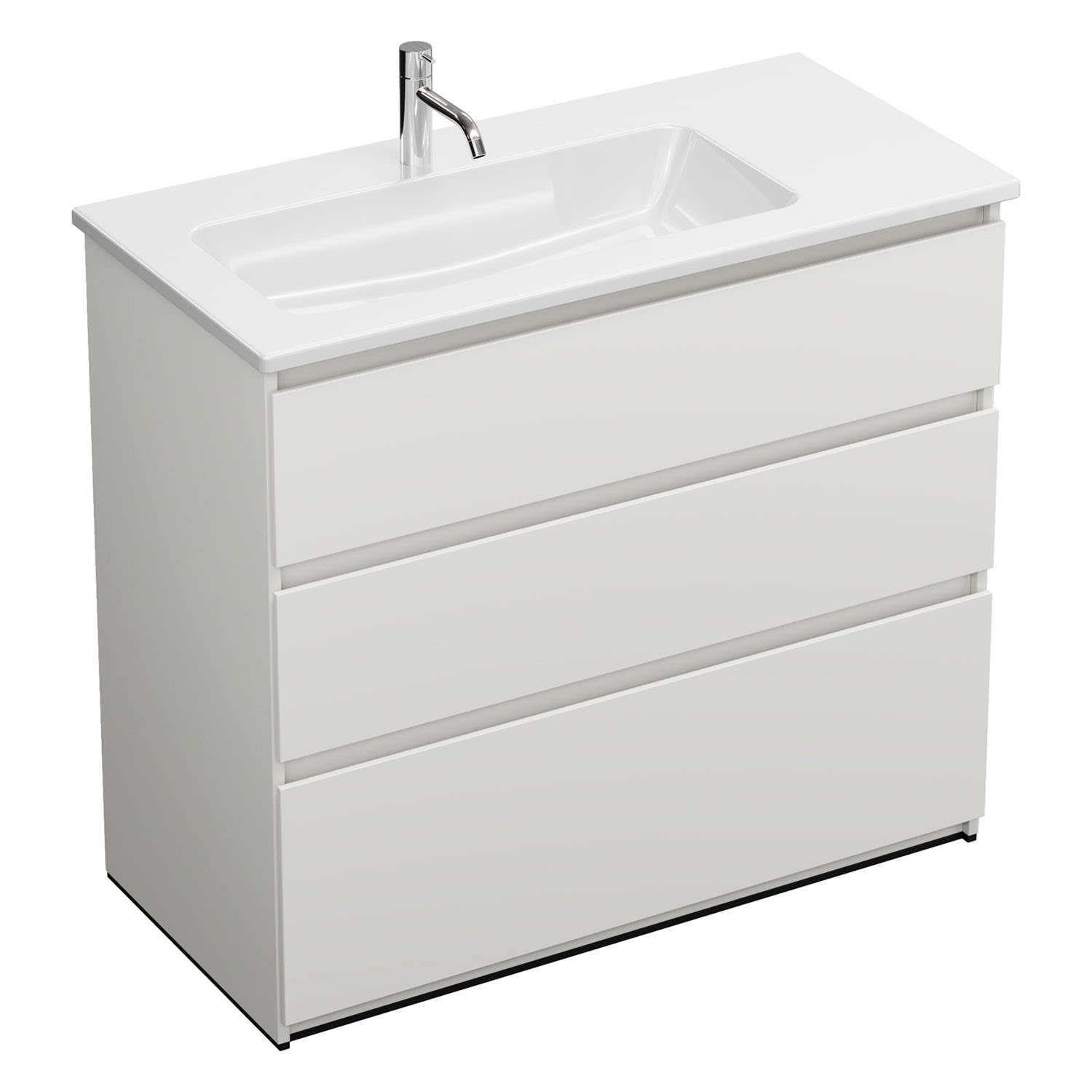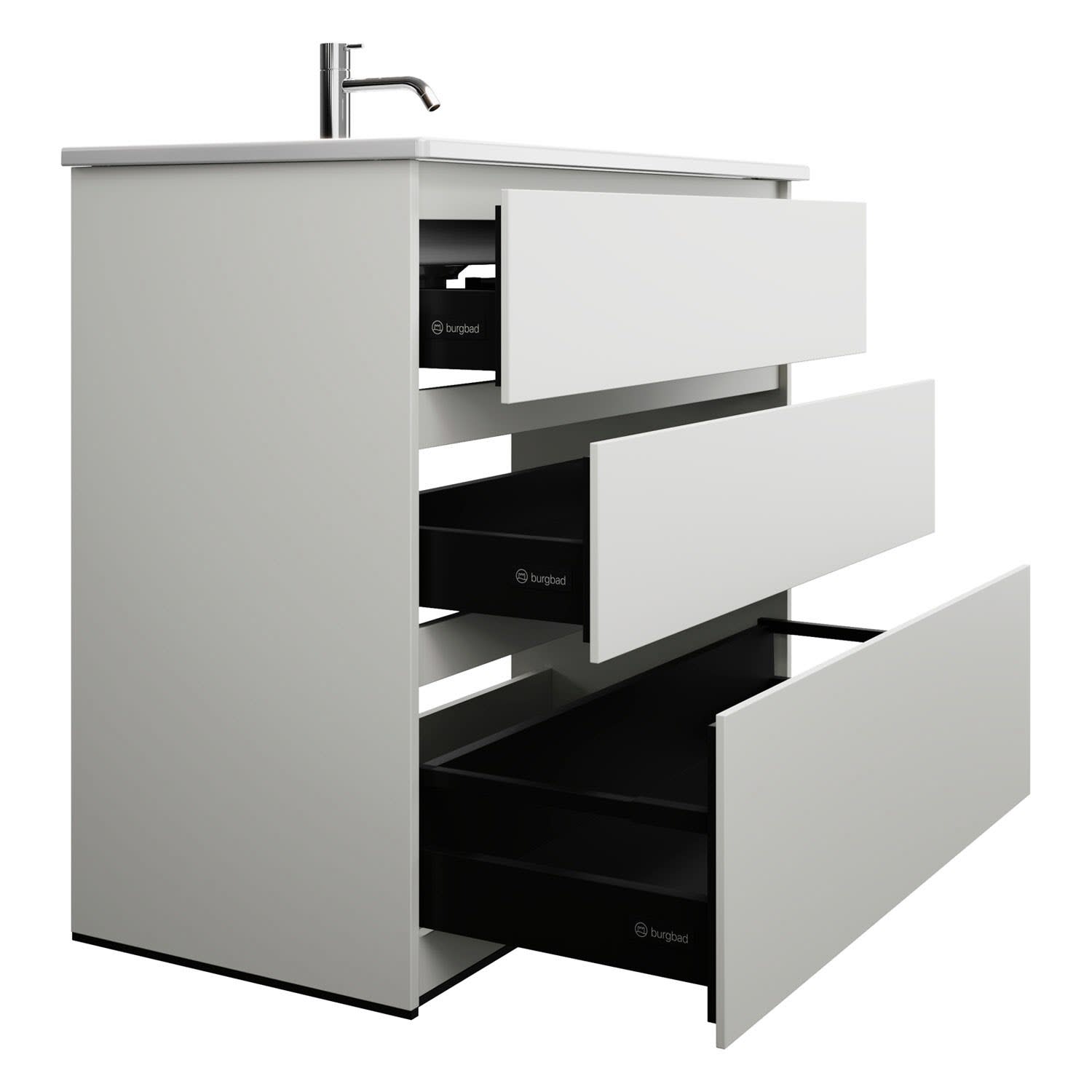 burgbad Lin20 Waschtischunterschrank mit Keramik-Waschtisch 103 cm, 3 Auszüge, links