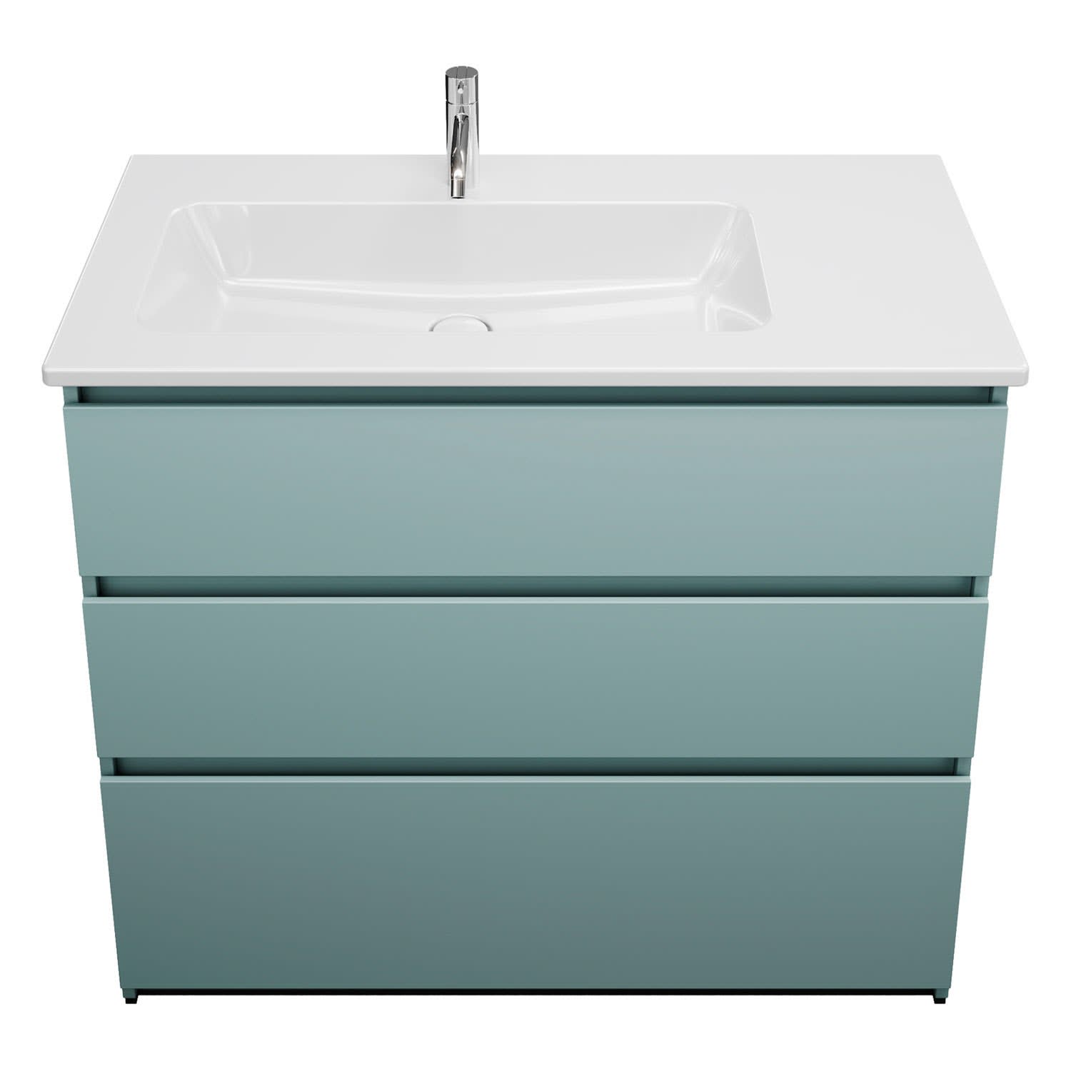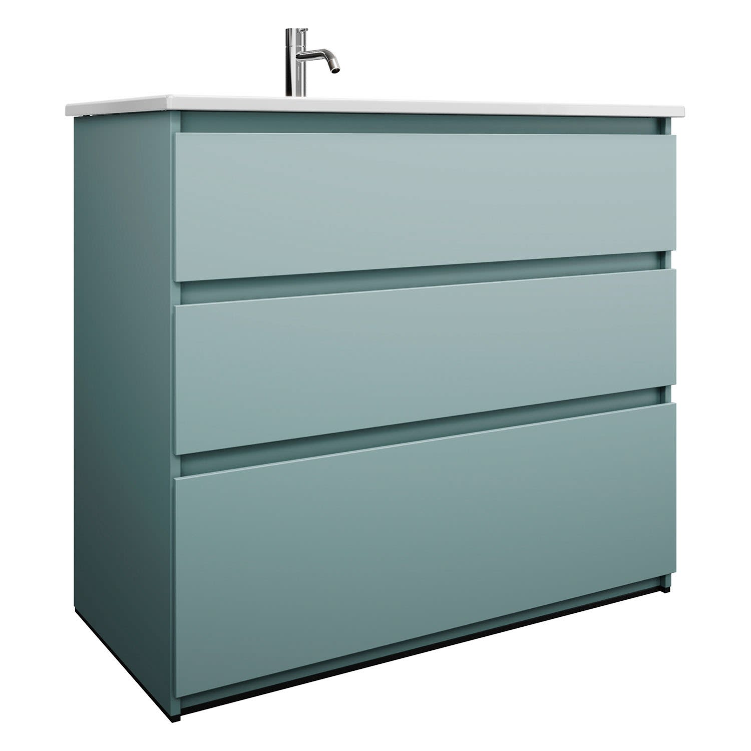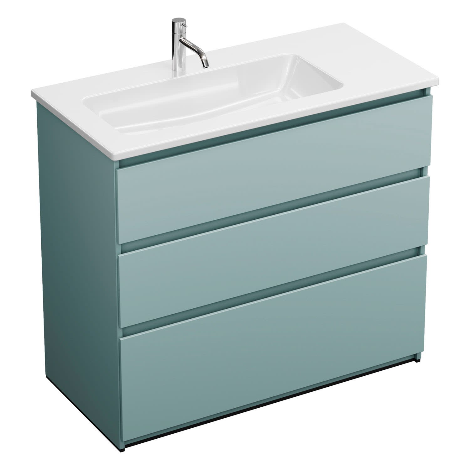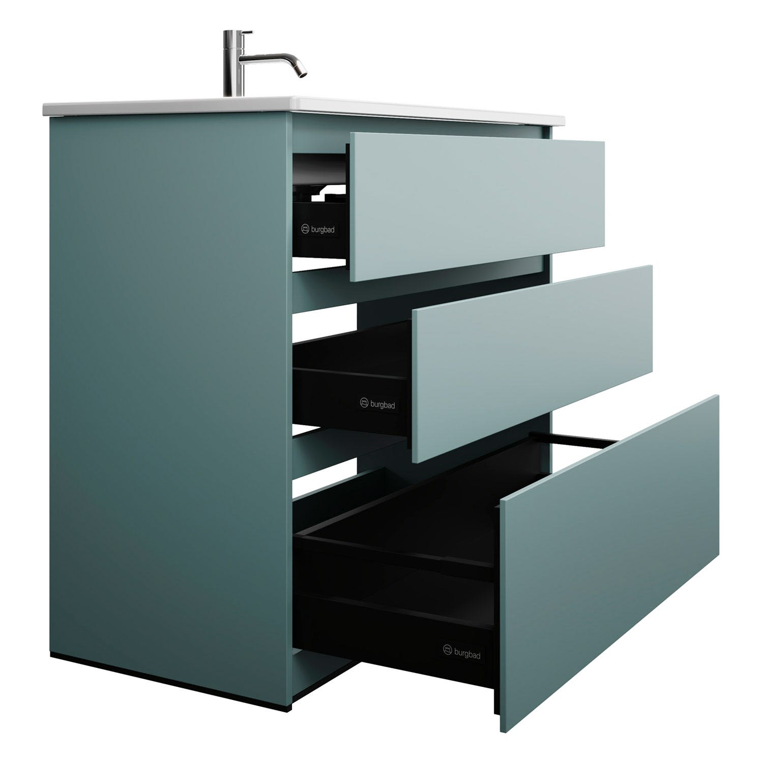 burgbad Lin20 Waschtischunterschrank mit Keramik-Waschtisch 103 cm, 3 Auszüge, links