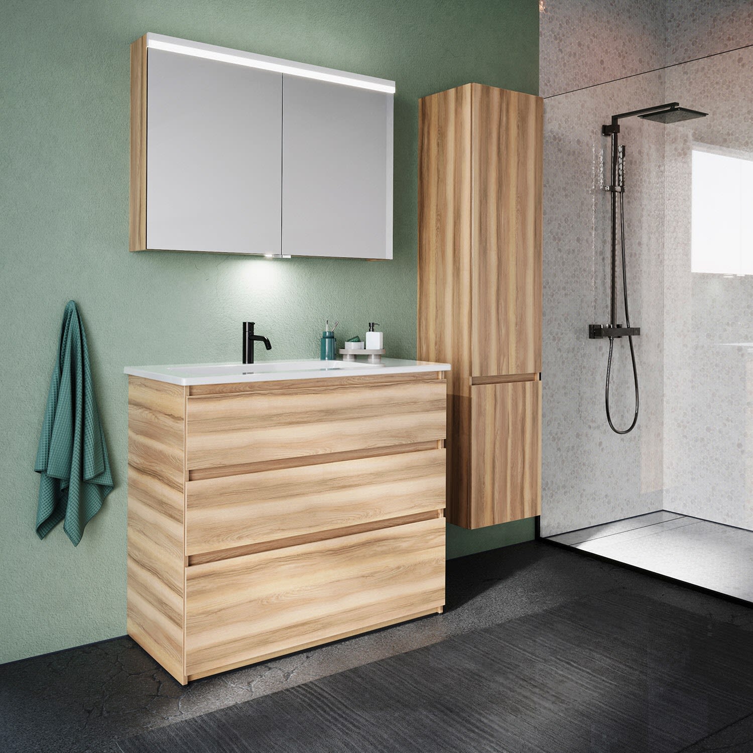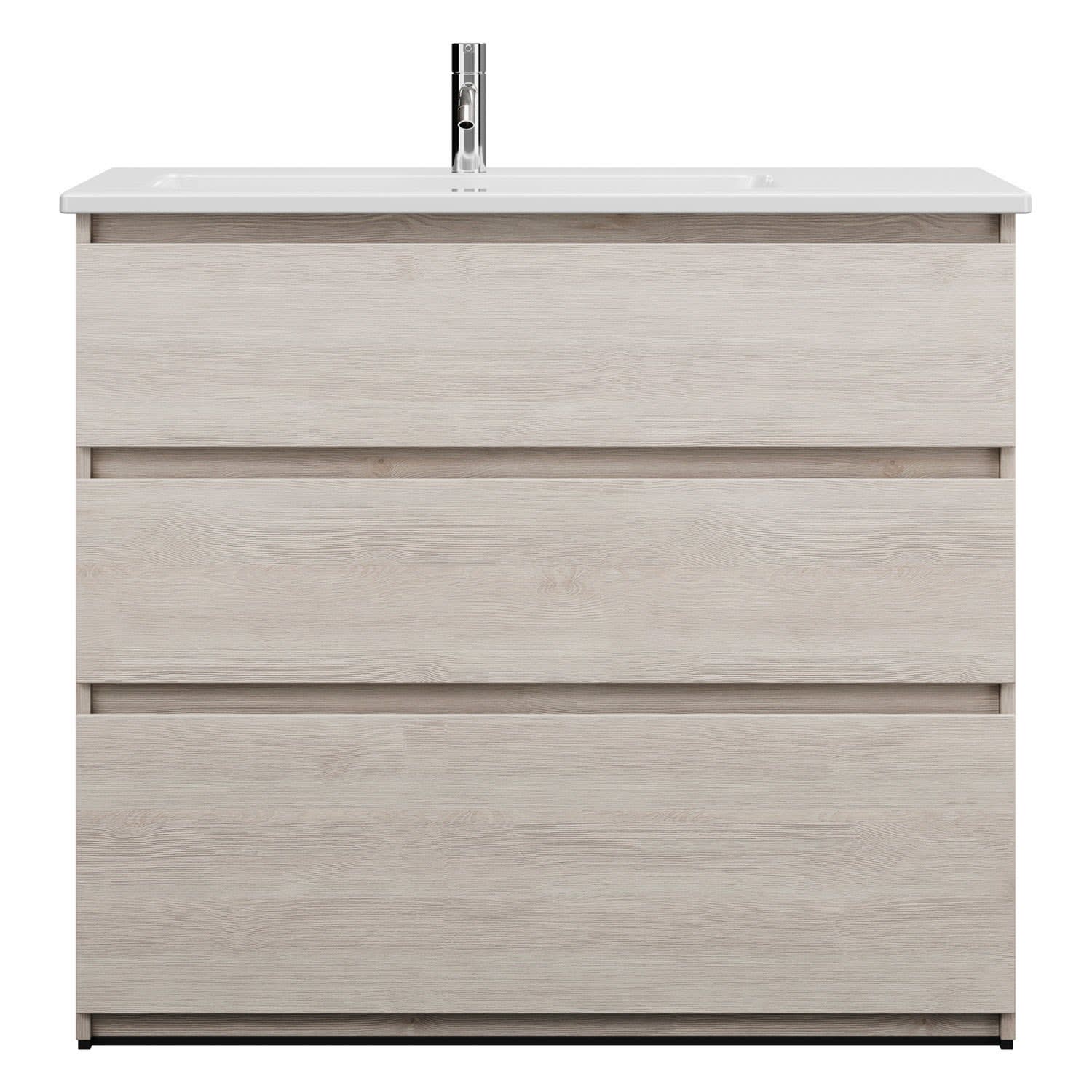 burgbad Lin20 Waschtischunterschrank mit Keramik-Waschtisch 103 cm, 3 Auszüge, links