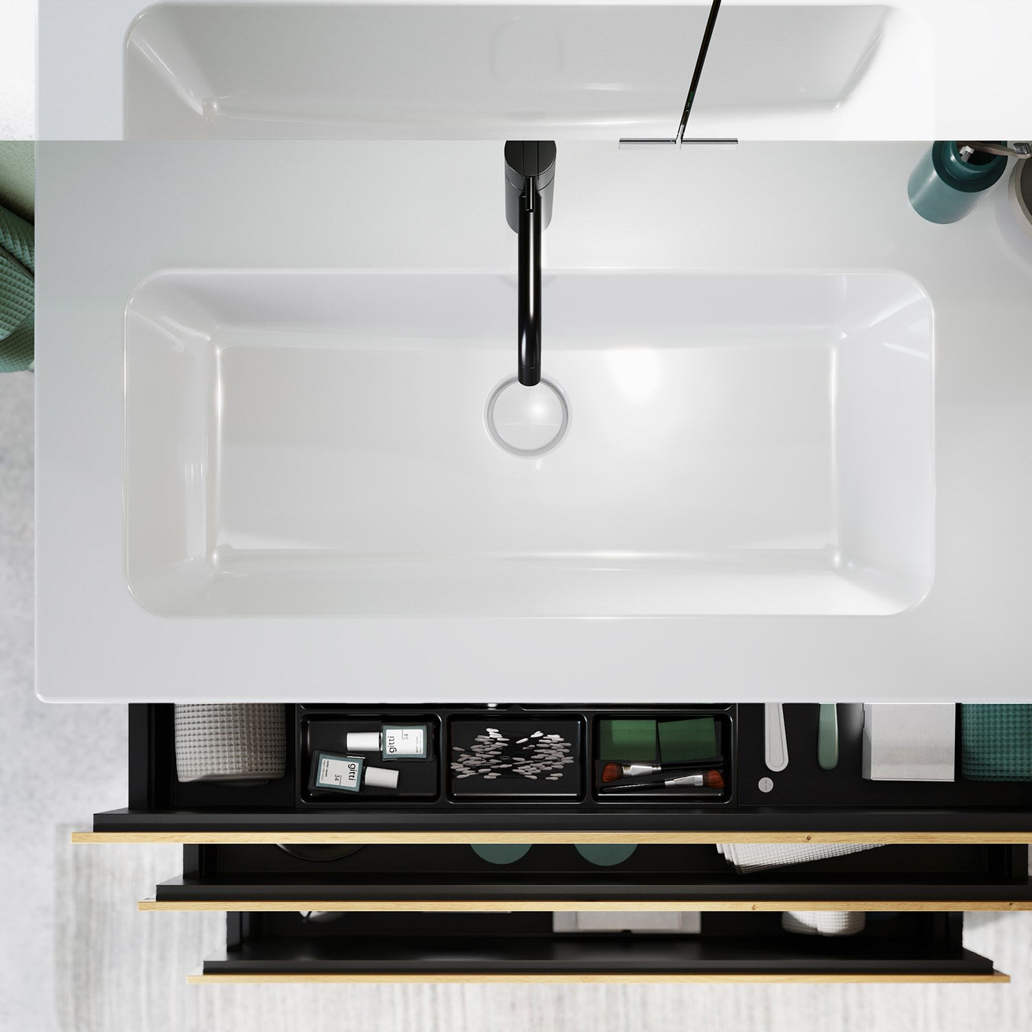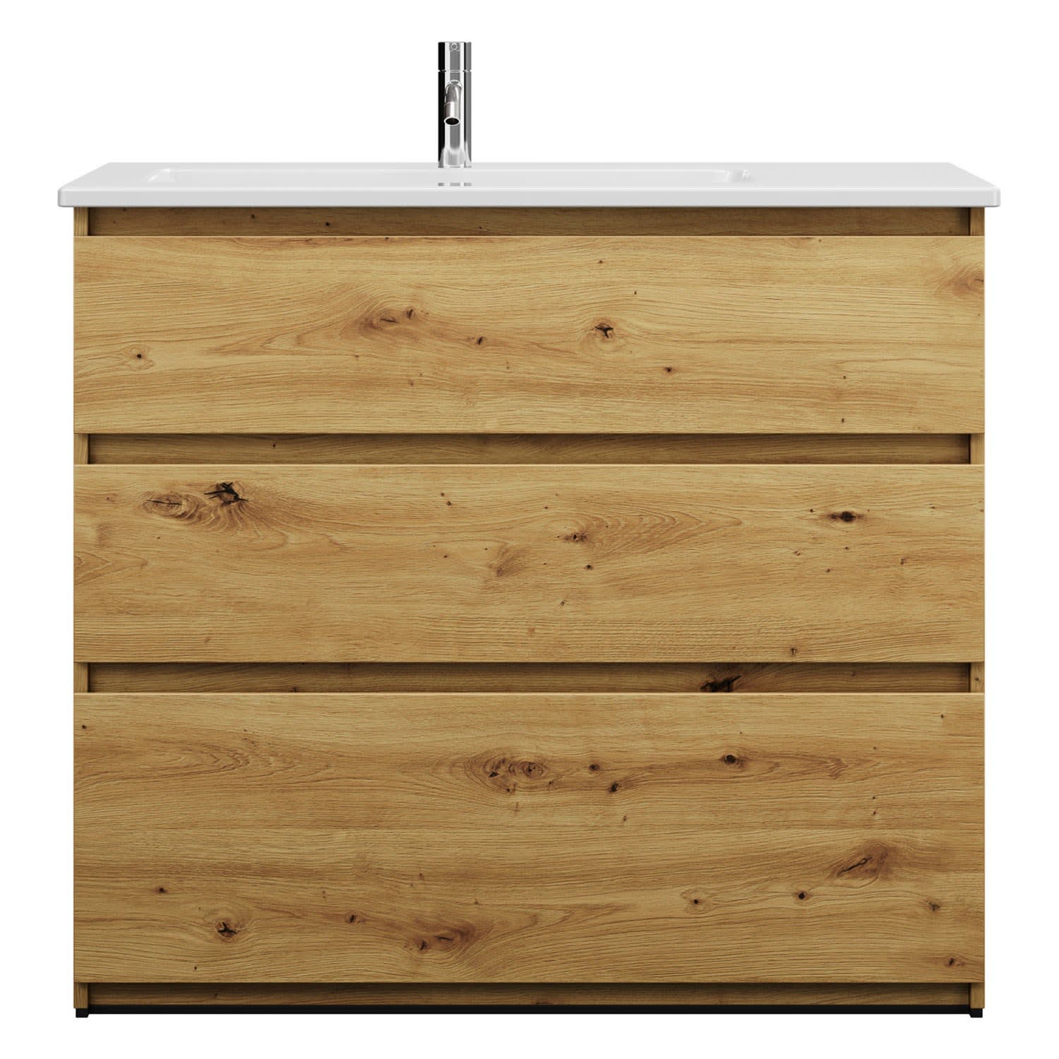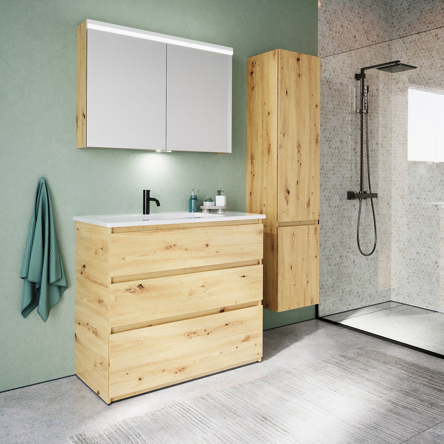 burgbad Lin20 Waschtischunterschrank mit Keramik-Waschtisch 103 cm, 3 Auszüge, links
