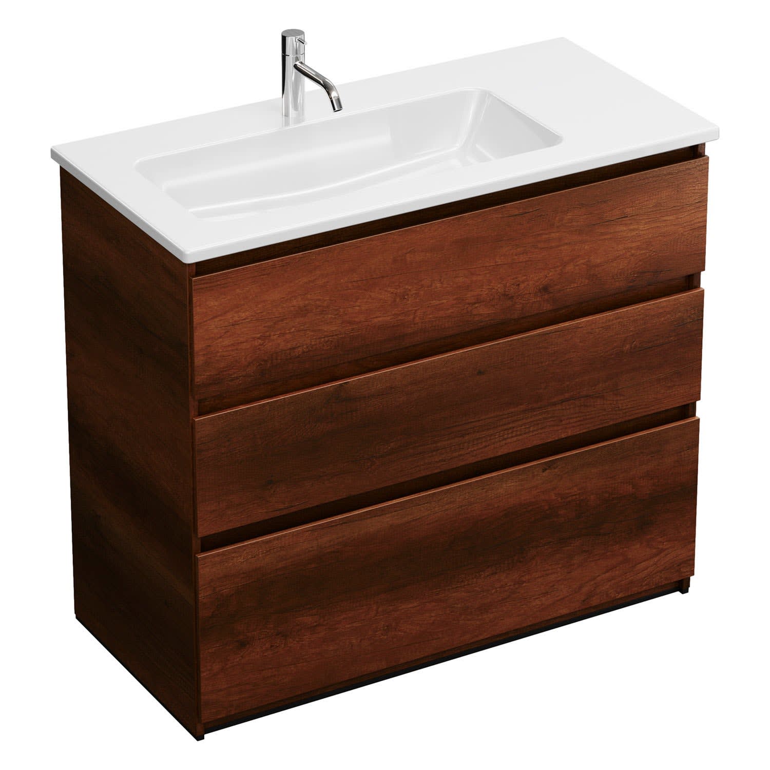 burgbad Lin20 Waschtischunterschrank mit Keramik-Waschtisch 103 cm, 3 Auszüge, links