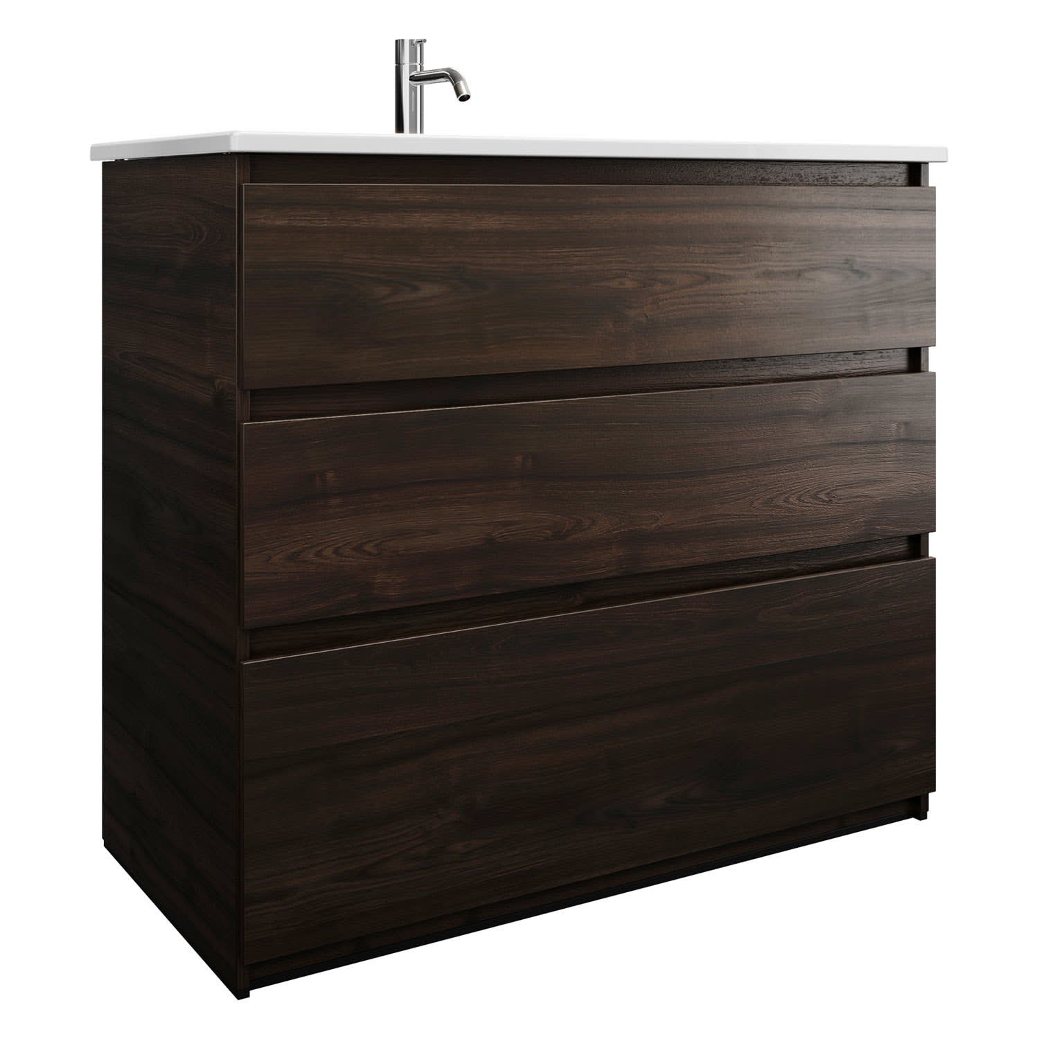 burgbad Lin20 Waschtischunterschrank mit Keramik-Waschtisch 103 cm, 3 Auszüge, links