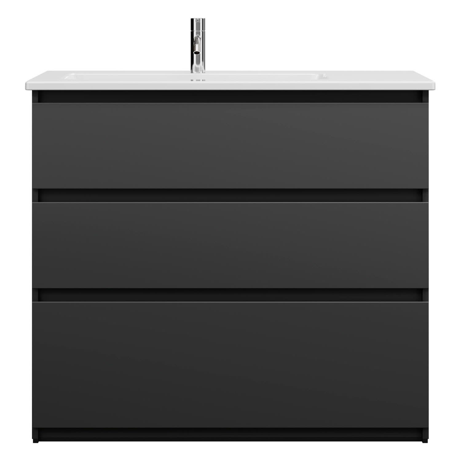 burgbad Lin20 Waschtischunterschrank mit Keramik-Waschtisch 103 cm, 3 Auszüge, links