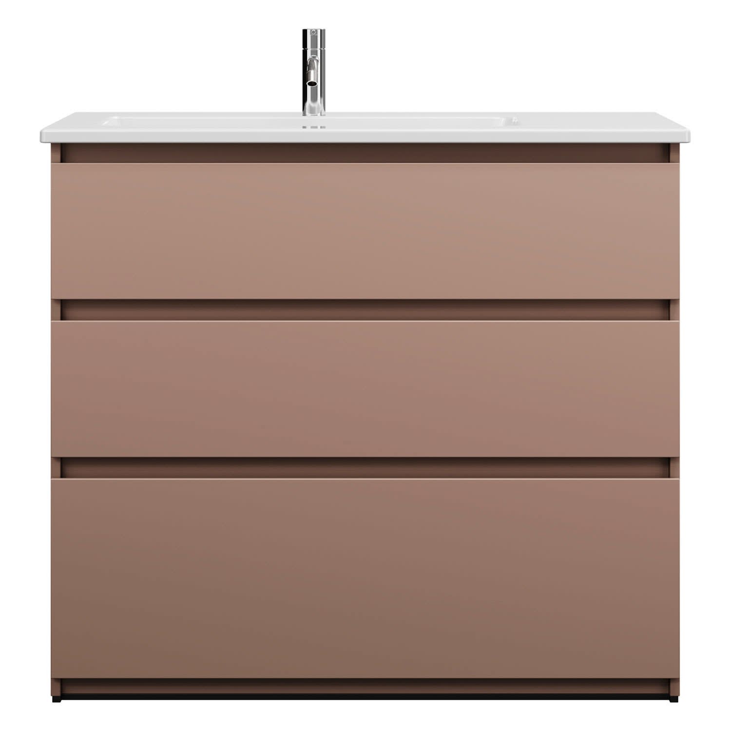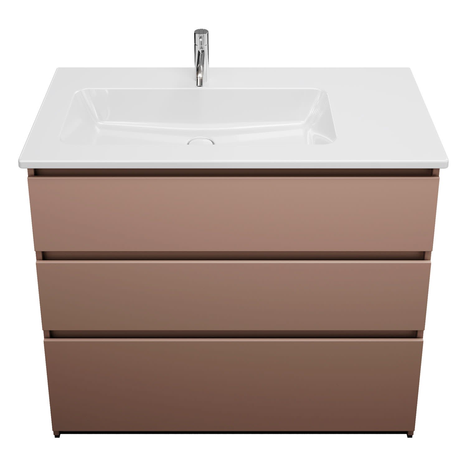 burgbad Lin20 Waschtischunterschrank mit Keramik-Waschtisch 103 cm, 3 Auszüge, links