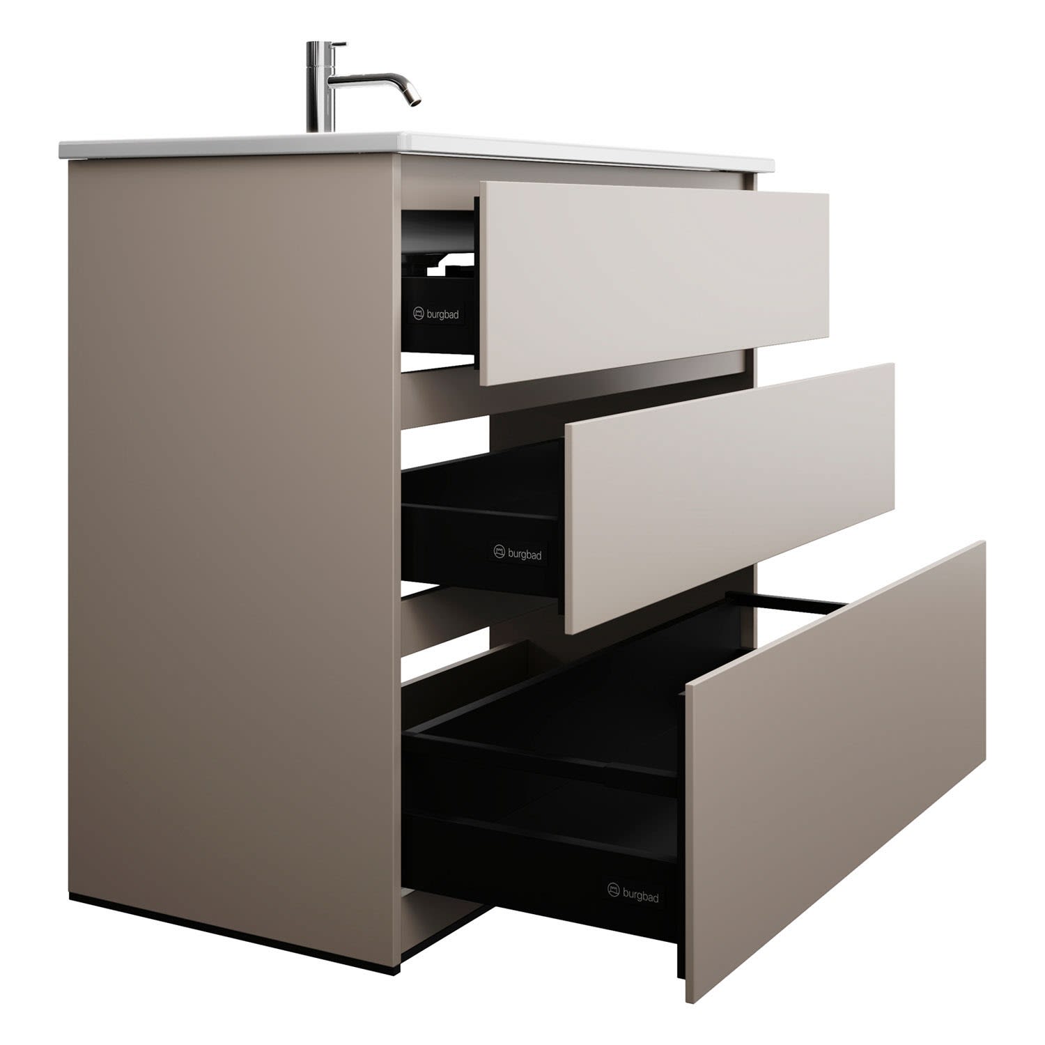 burgbad Lin20 Waschtischunterschrank mit Keramik-Waschtisch 103 cm, 3 Auszüge, links