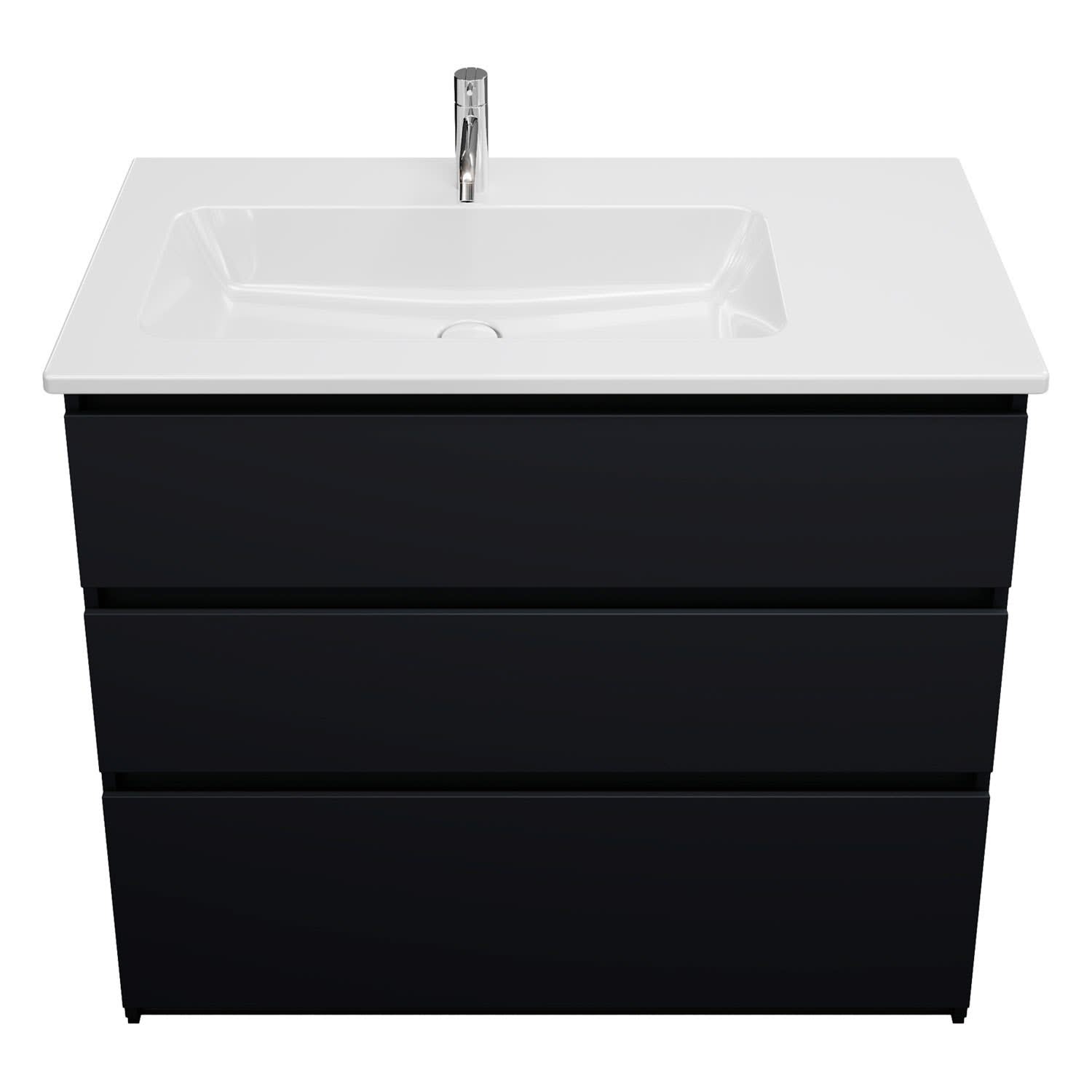 burgbad Lin20 Waschtischunterschrank mit Keramik-Waschtisch 103 cm, 3 Auszüge, links