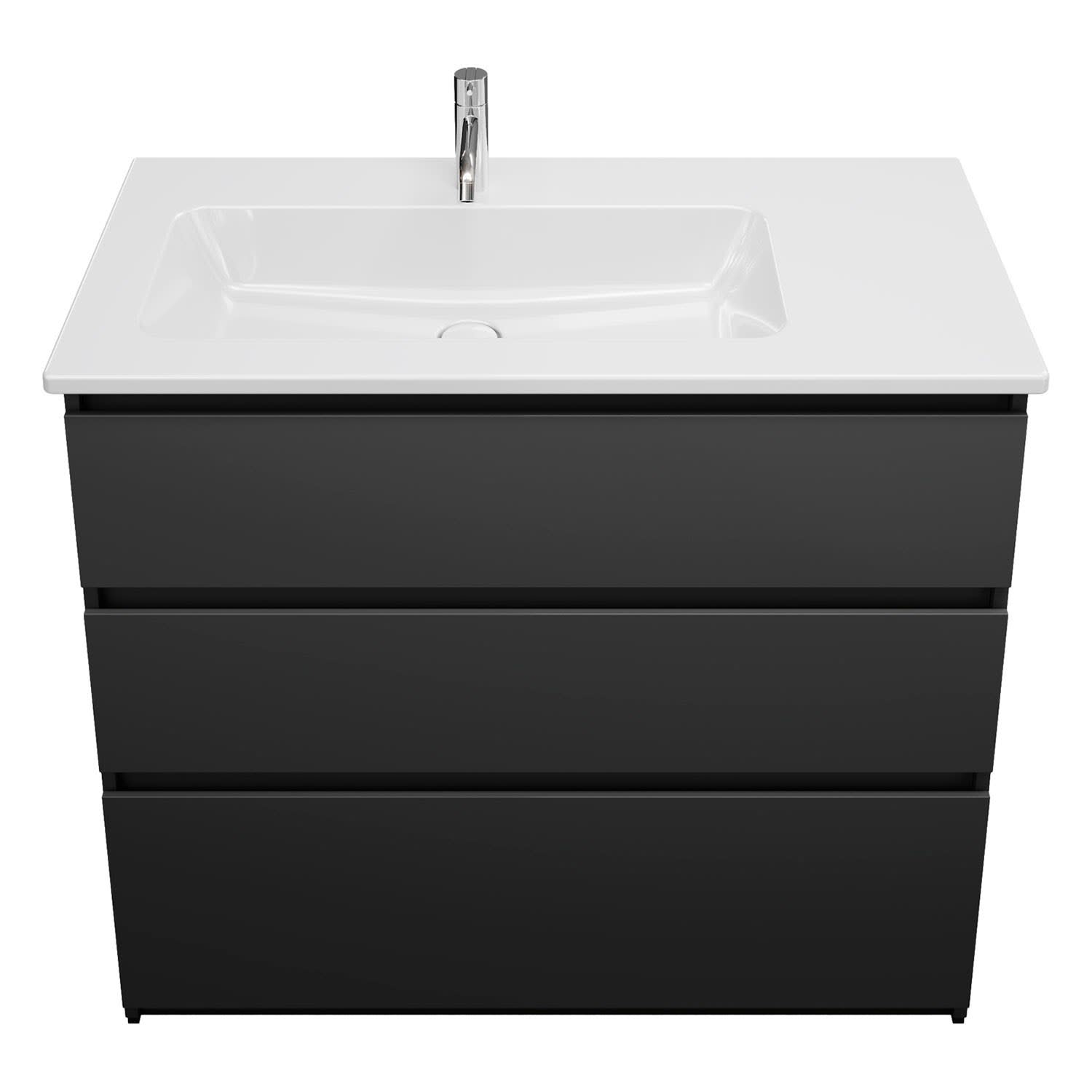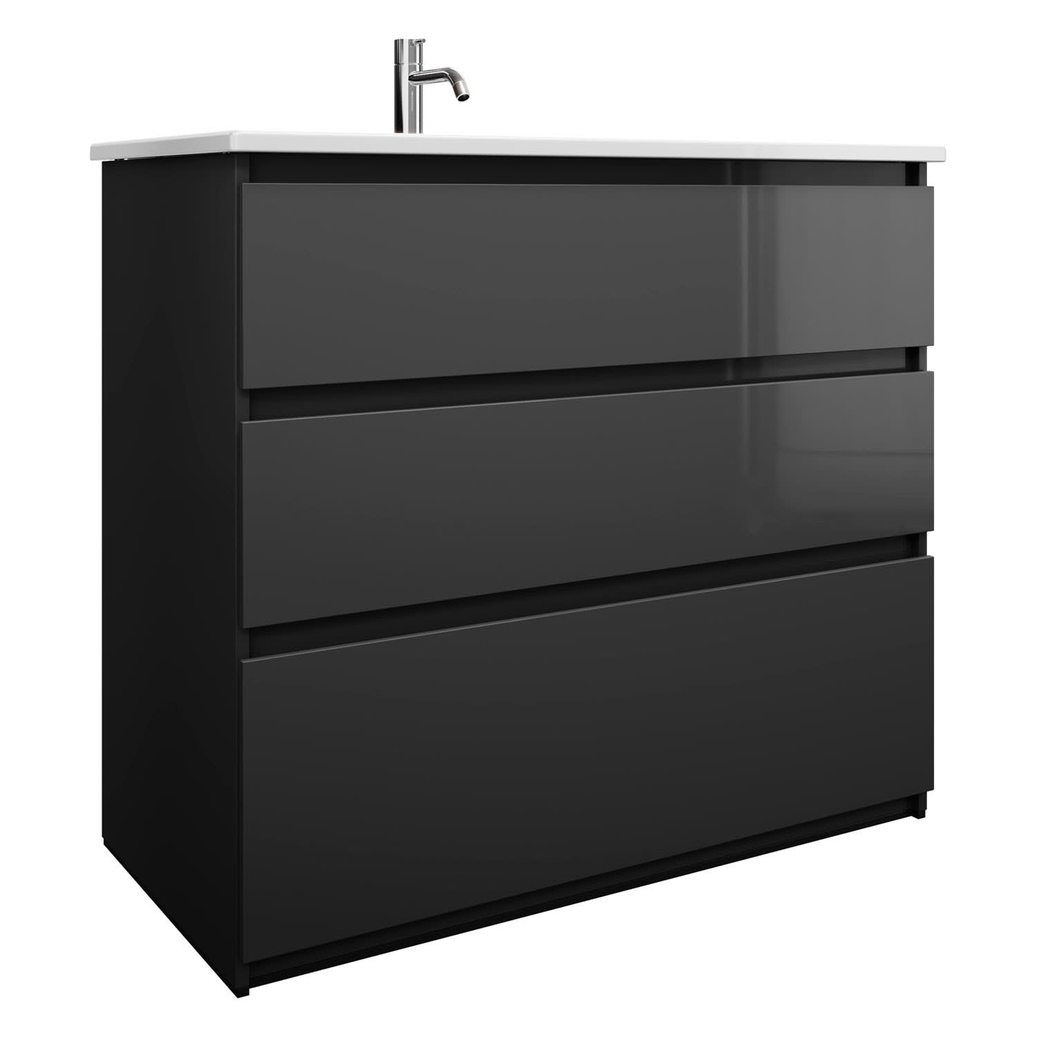 burgbad Lin20 Waschtischunterschrank mit Keramik-Waschtisch 103 cm, 3 Auszüge, links
