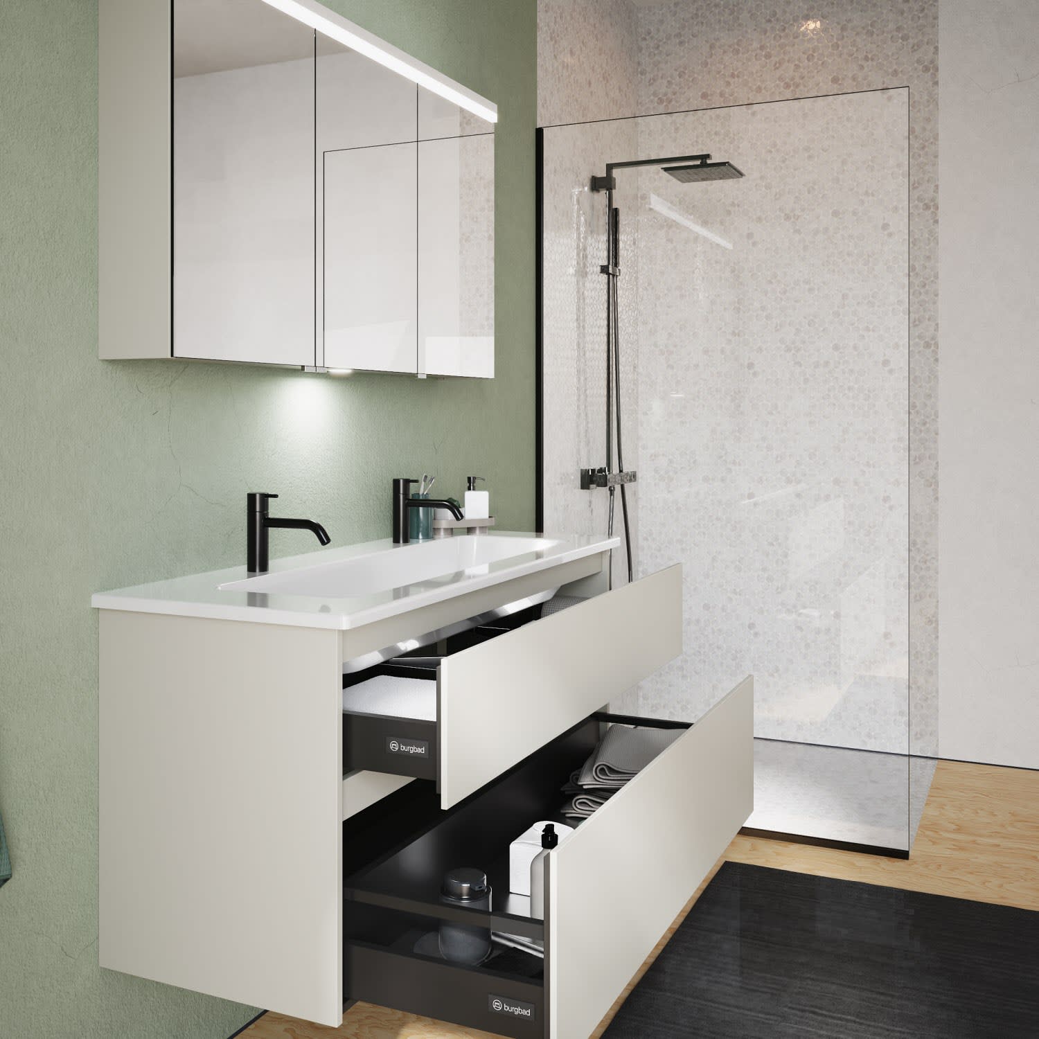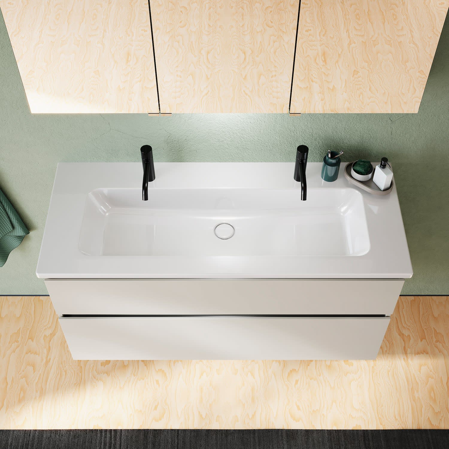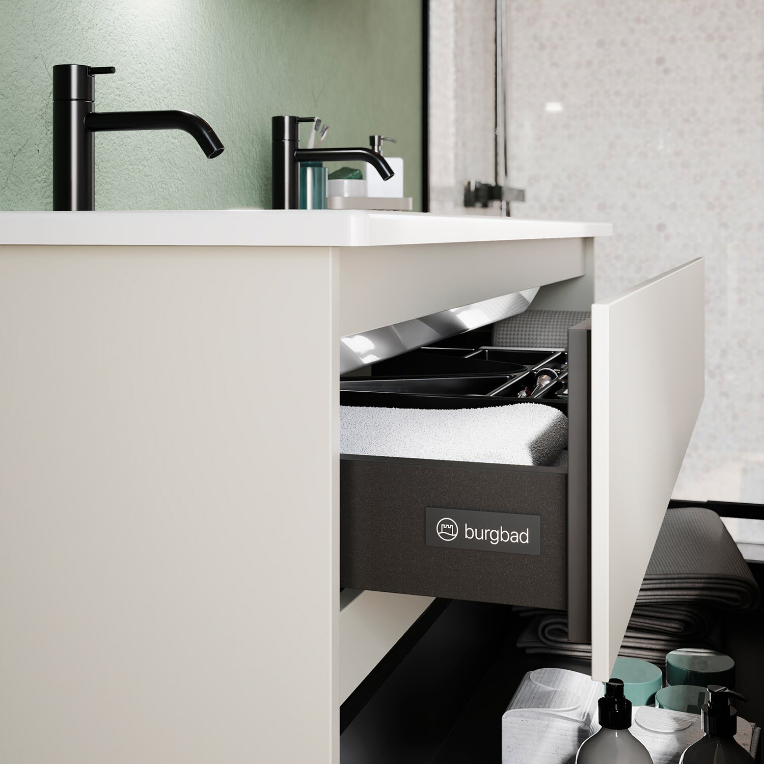 burgbad Lin20 Waschtischunterschrank mit Keramik-Waschtisch 123 cm, 2 Auszüge