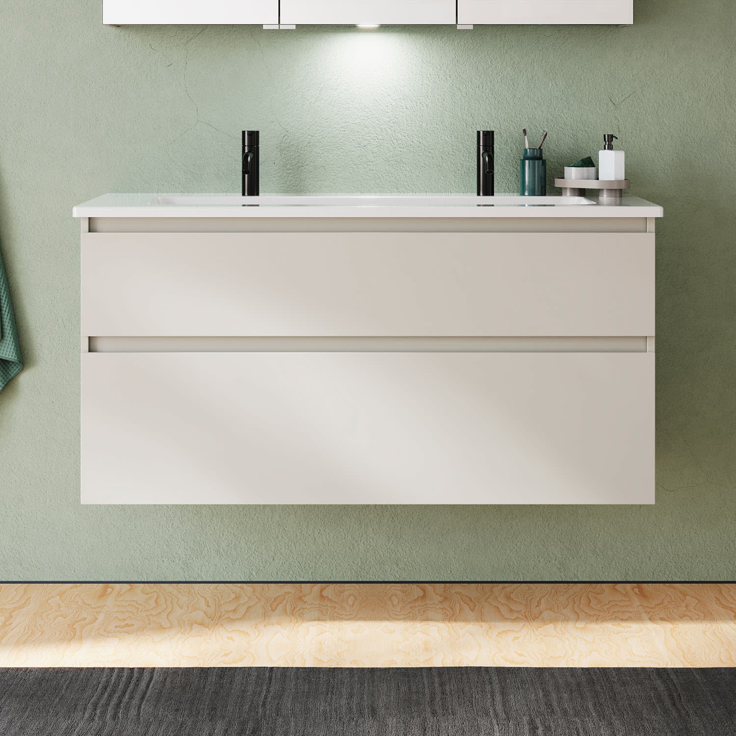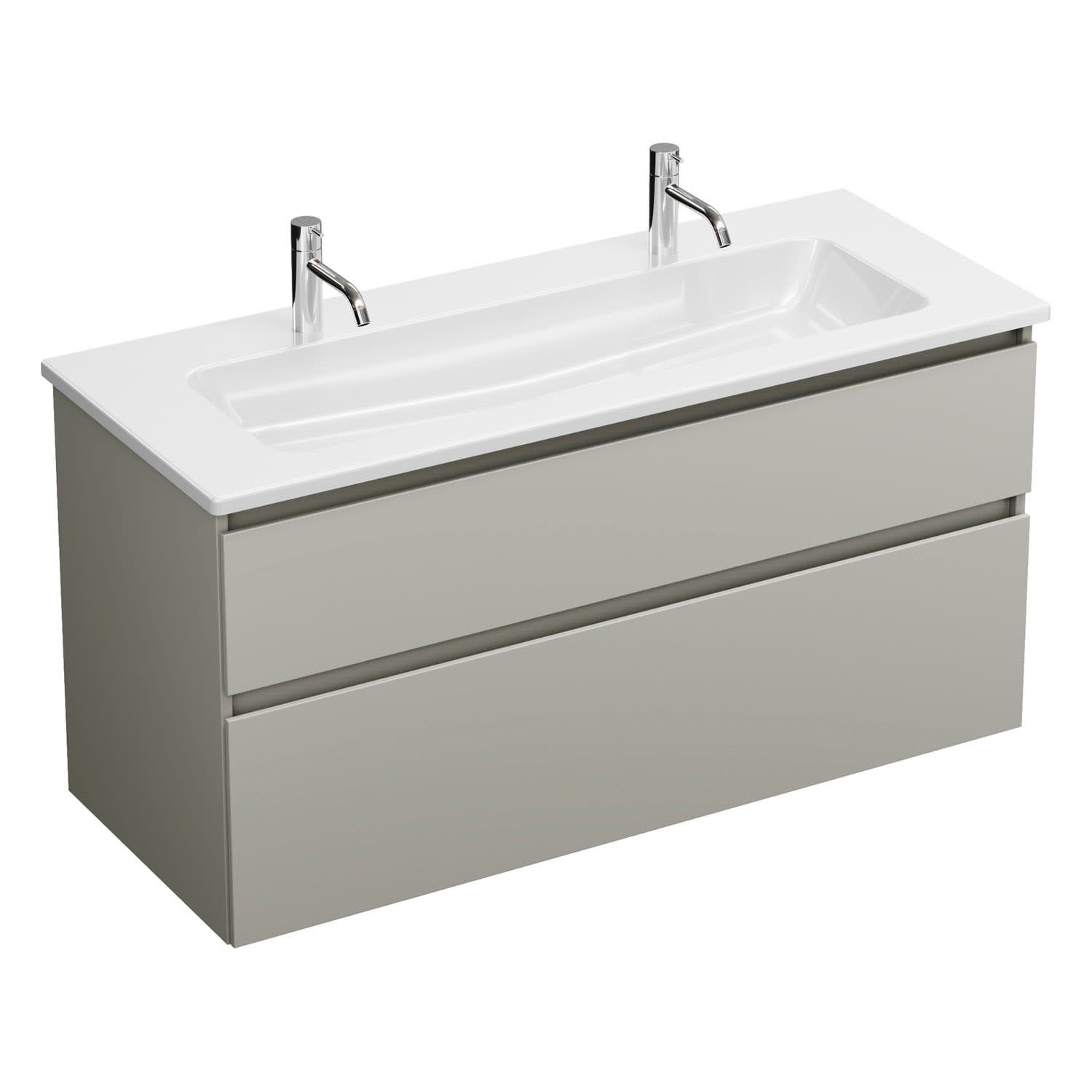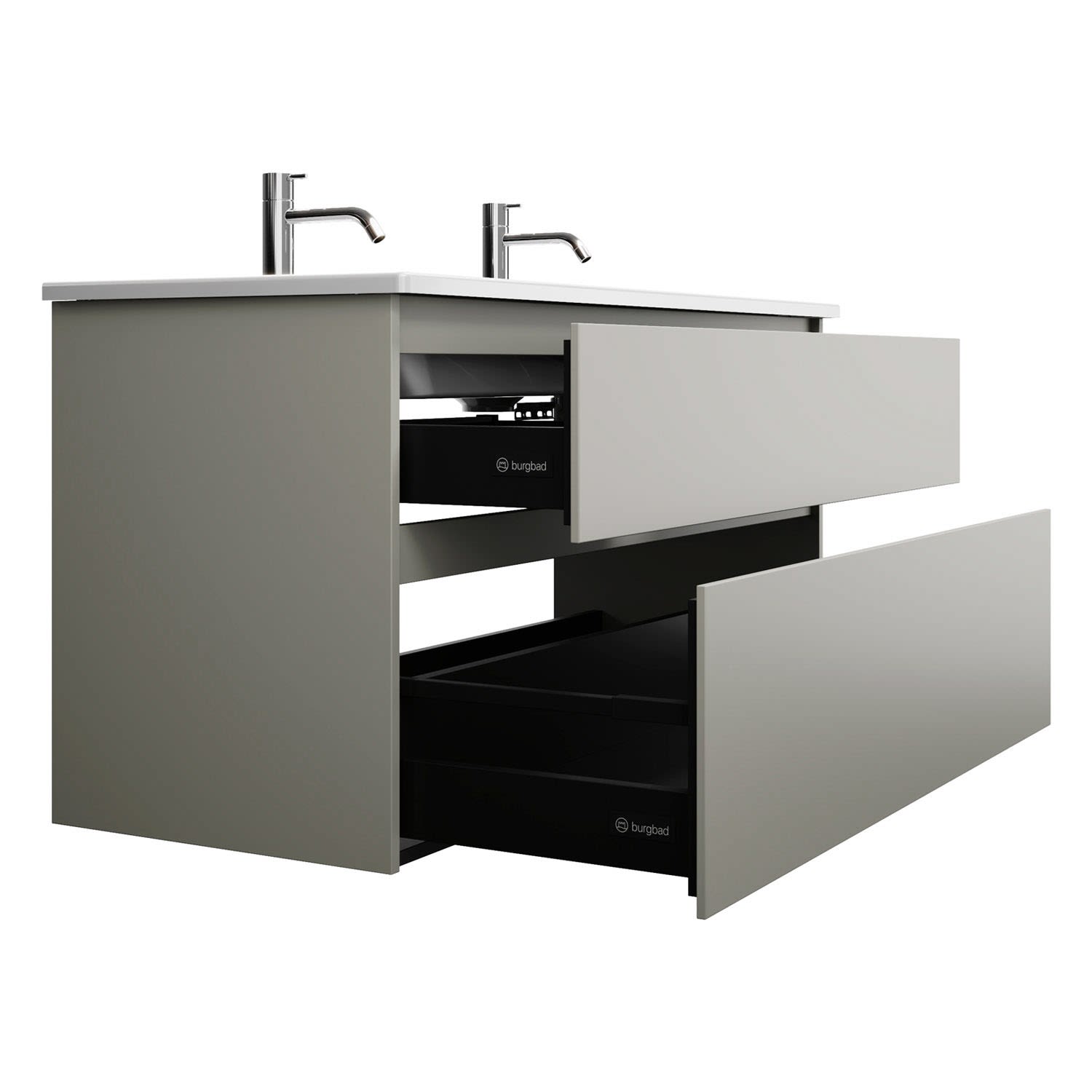 burgbad Lin20 Waschtischunterschrank mit Keramik-Waschtisch 123 cm, 2 Auszüge