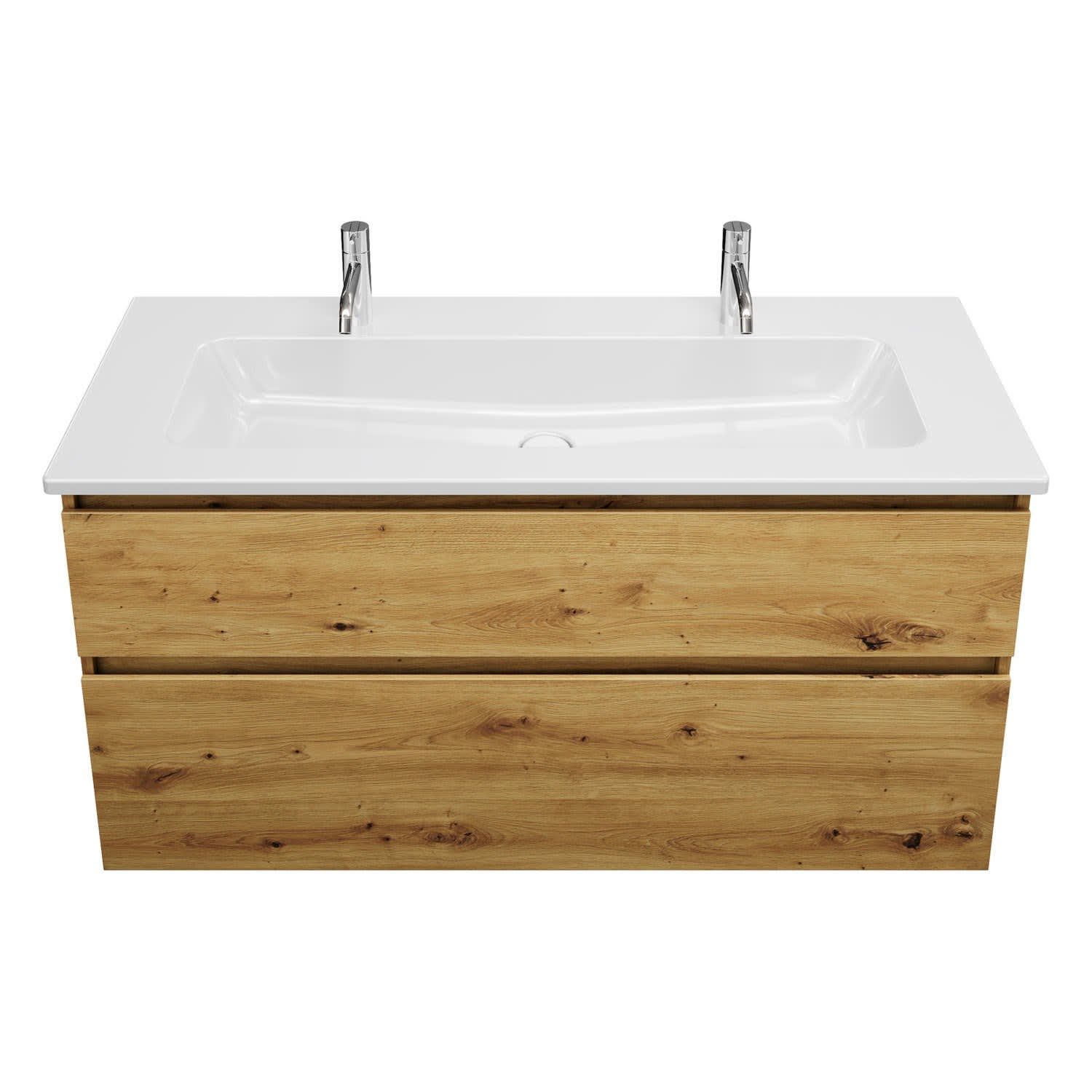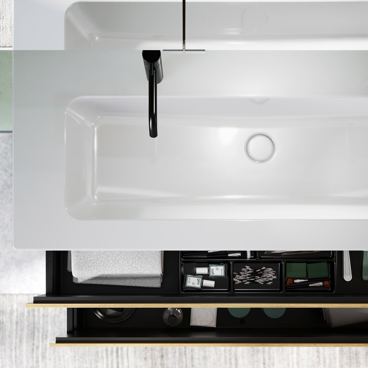 burgbad Lin20 Waschtischunterschrank mit Keramik-Waschtisch 123 cm, 2 Auszüge