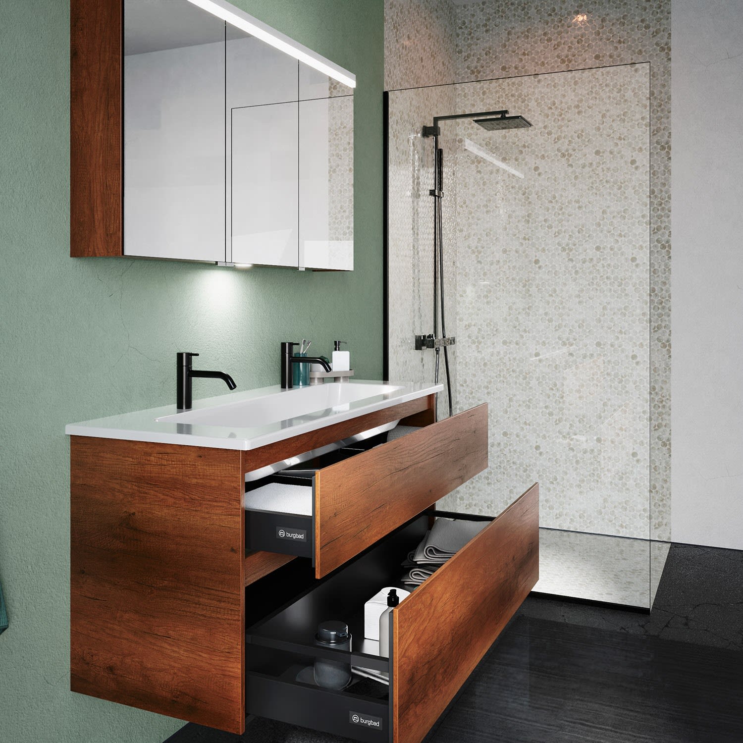burgbad Lin20 Waschtischunterschrank mit Keramik-Waschtisch 123 cm, 2 Auszüge