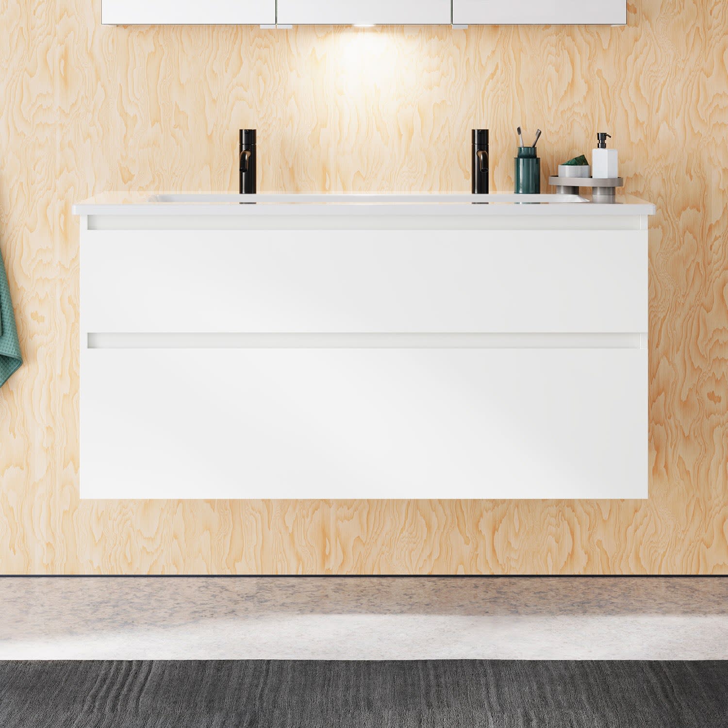burgbad Lin20 Waschtischunterschrank mit Keramik-Waschtisch 123 cm, 2 Auszüge