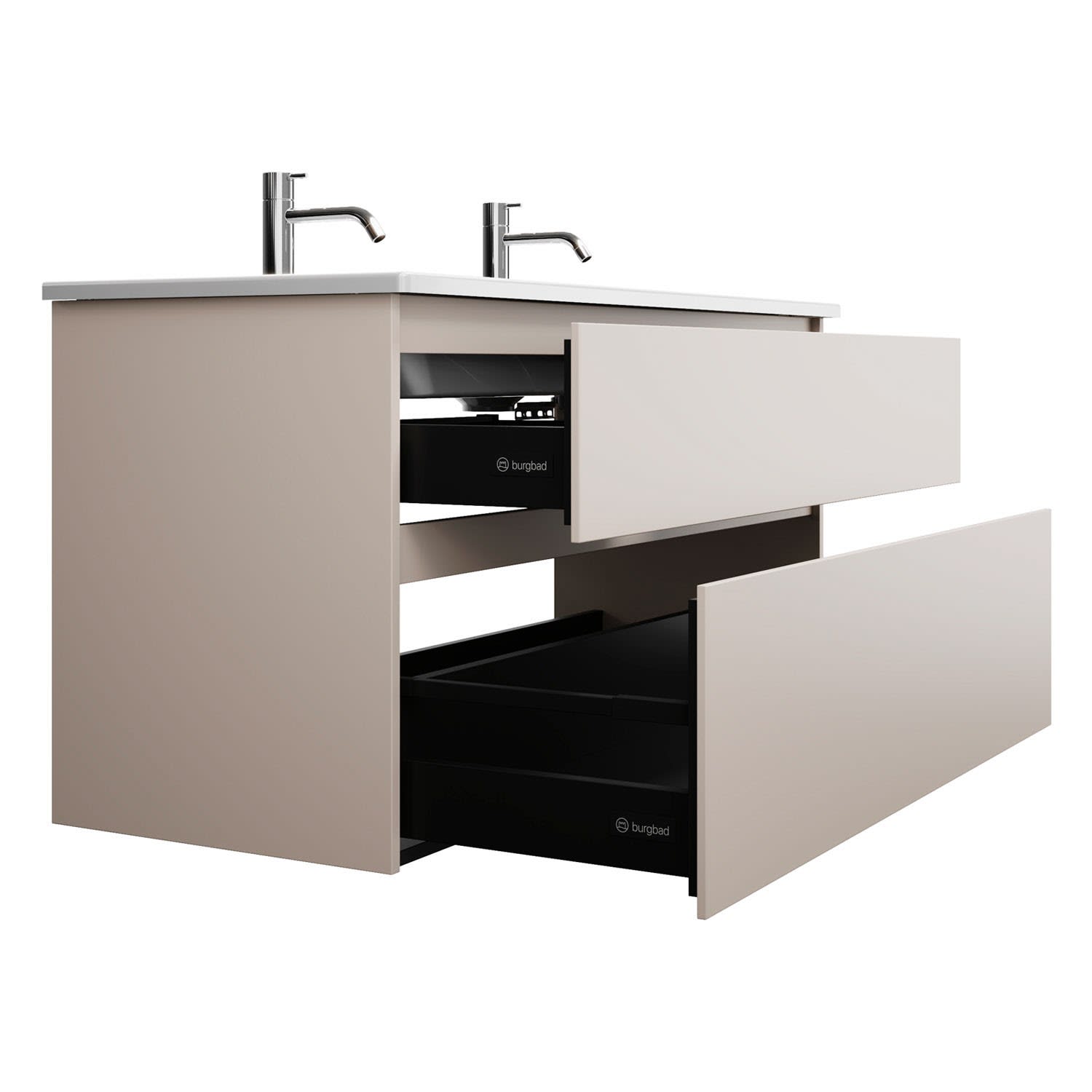 burgbad Lin20 Waschtischunterschrank mit Keramik-Waschtisch 123 cm, 2 Auszüge