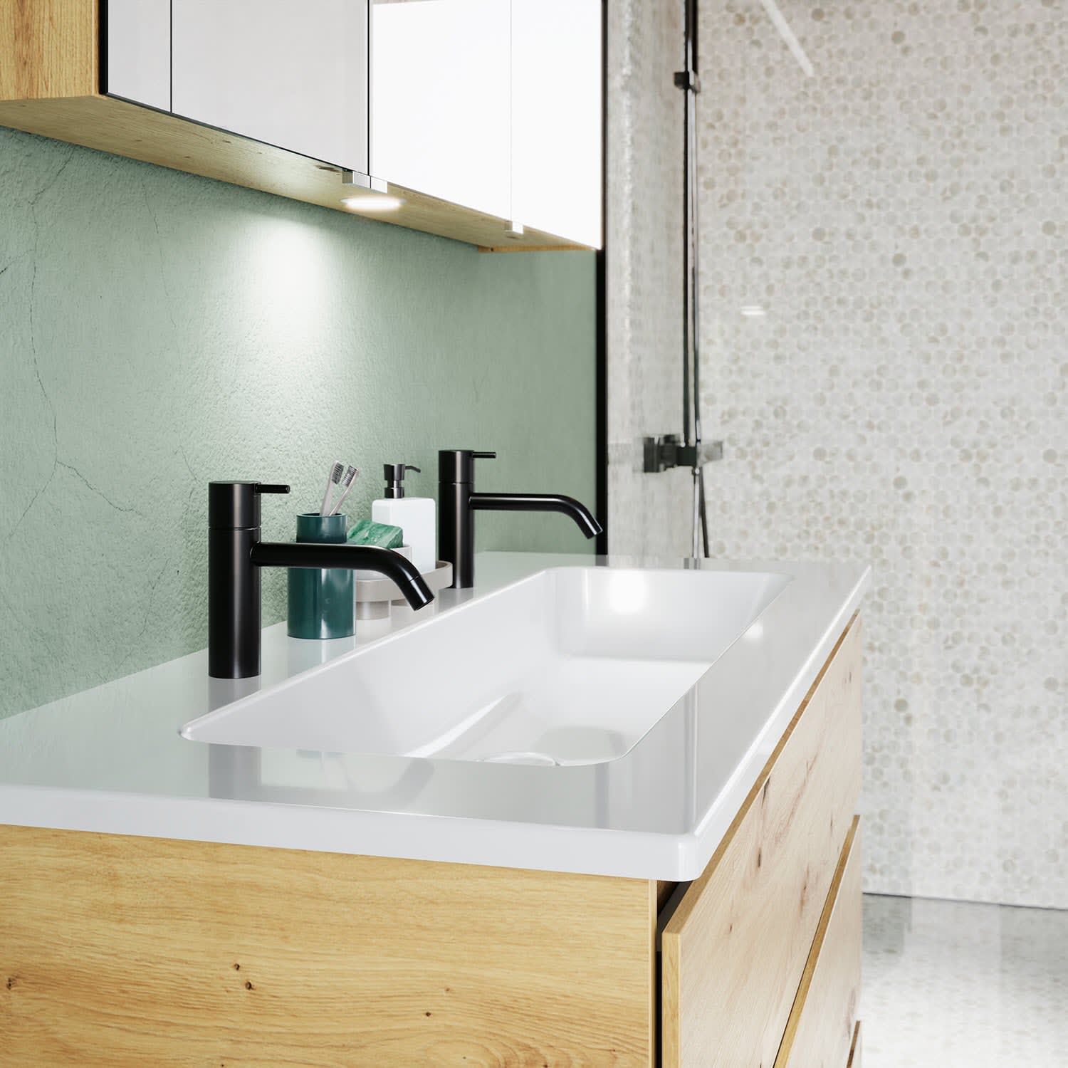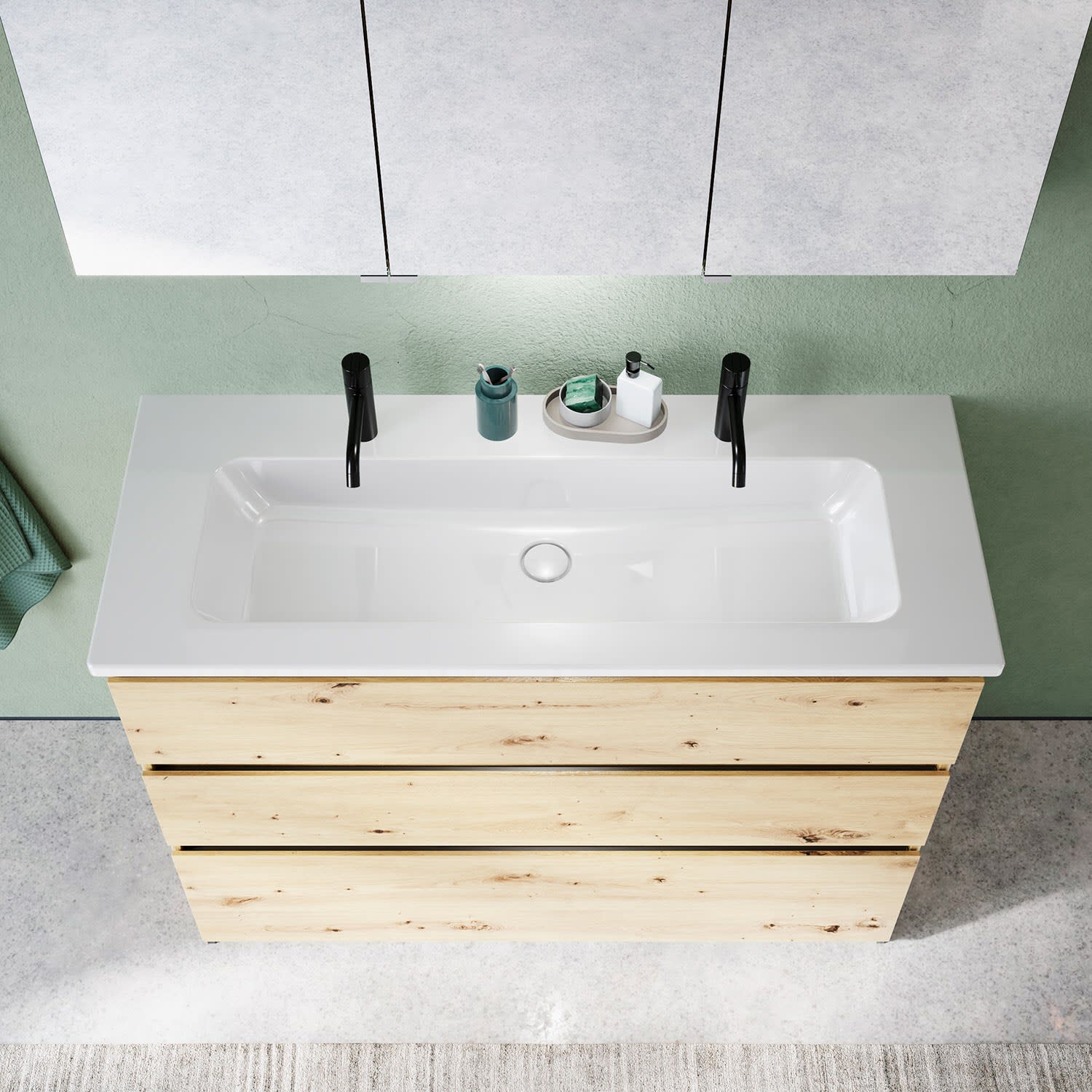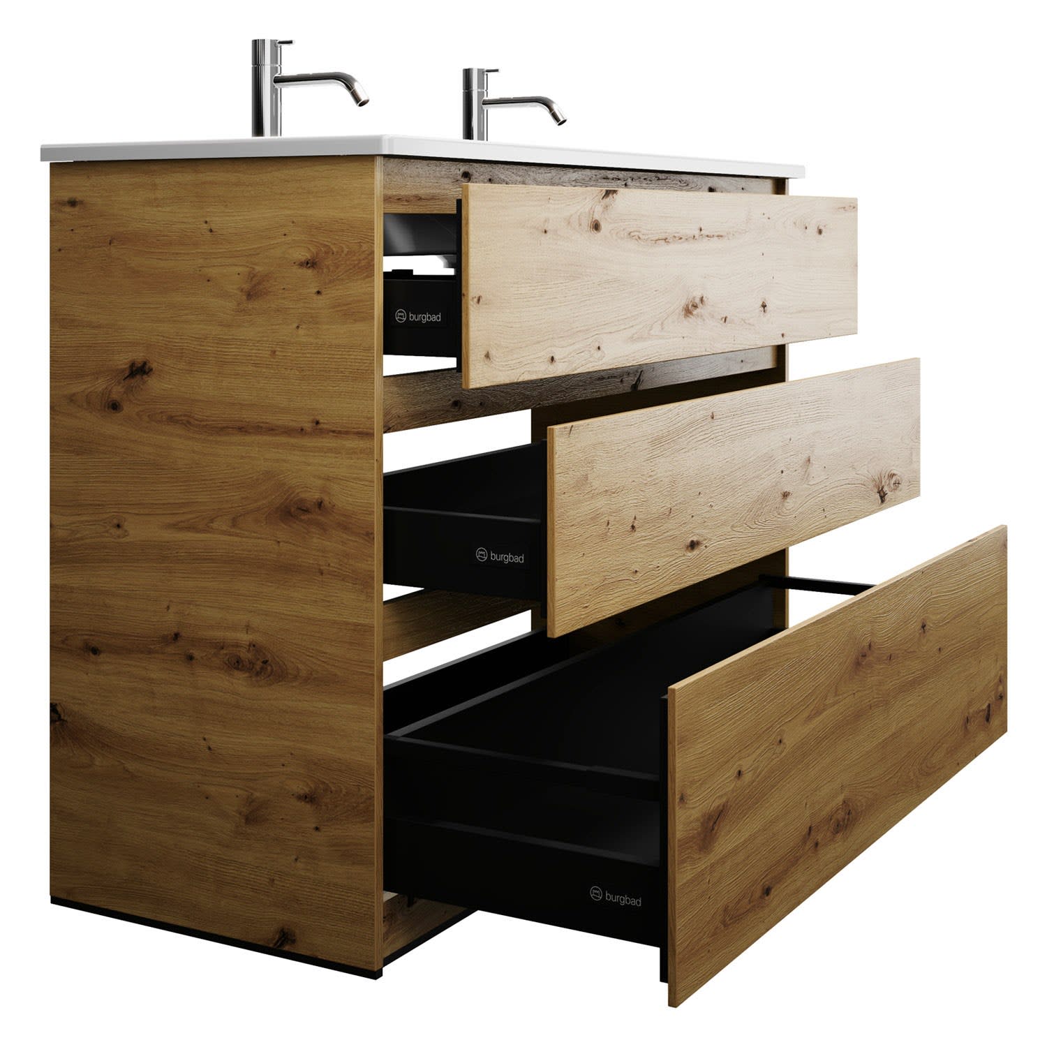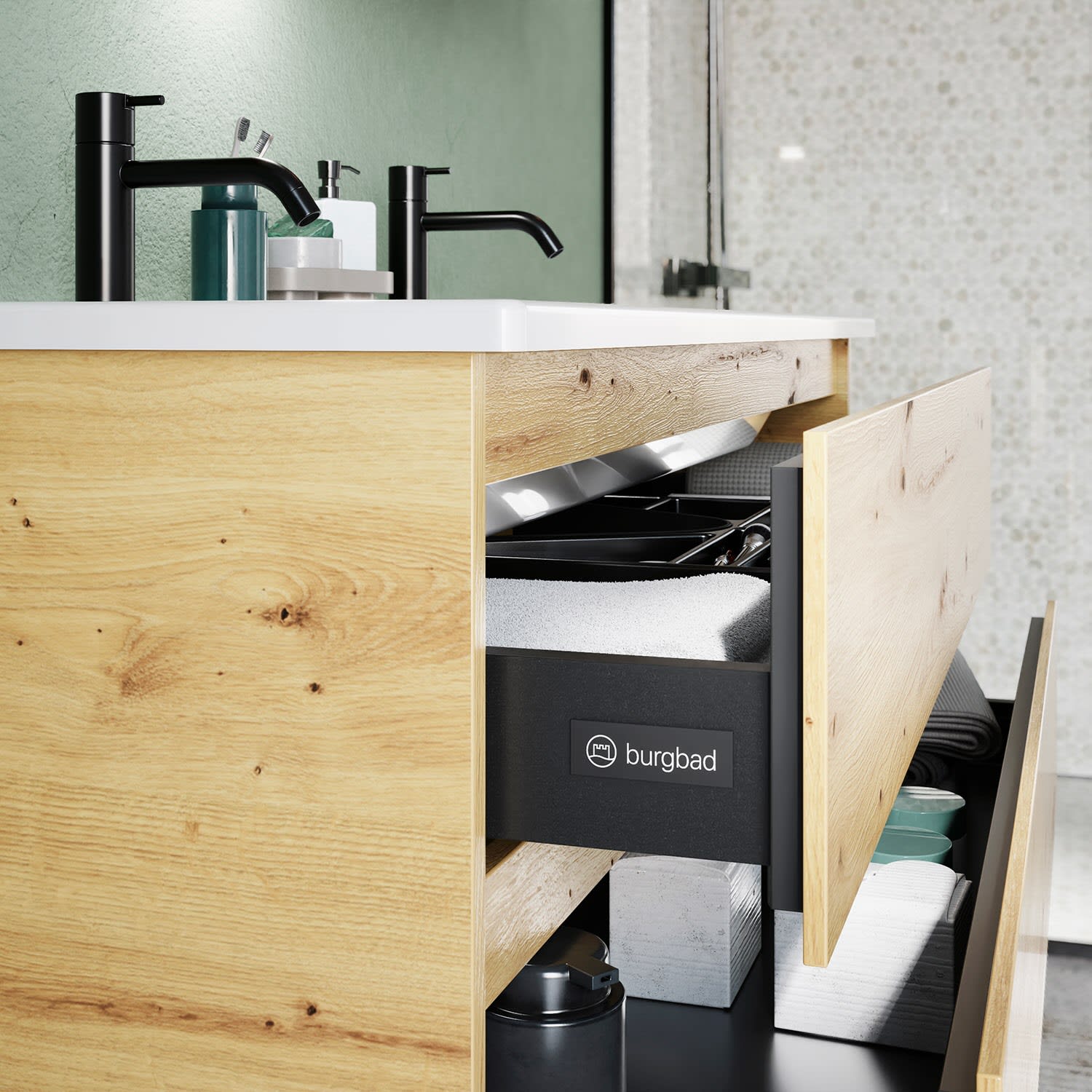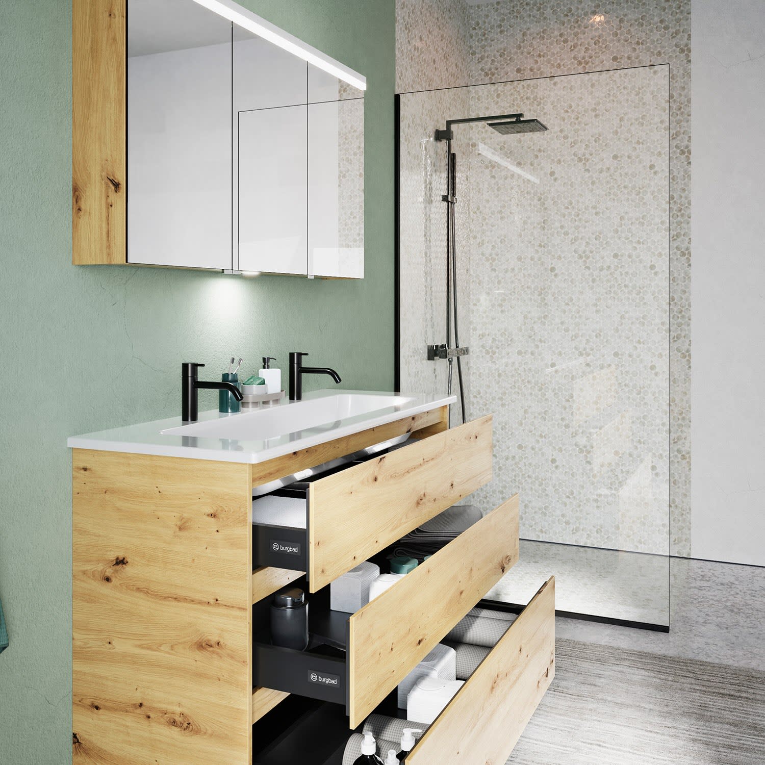 burgbad Lin20 Waschtischunterschrank mit Keramik-Waschtisch 123 cm, 3 Auszüge