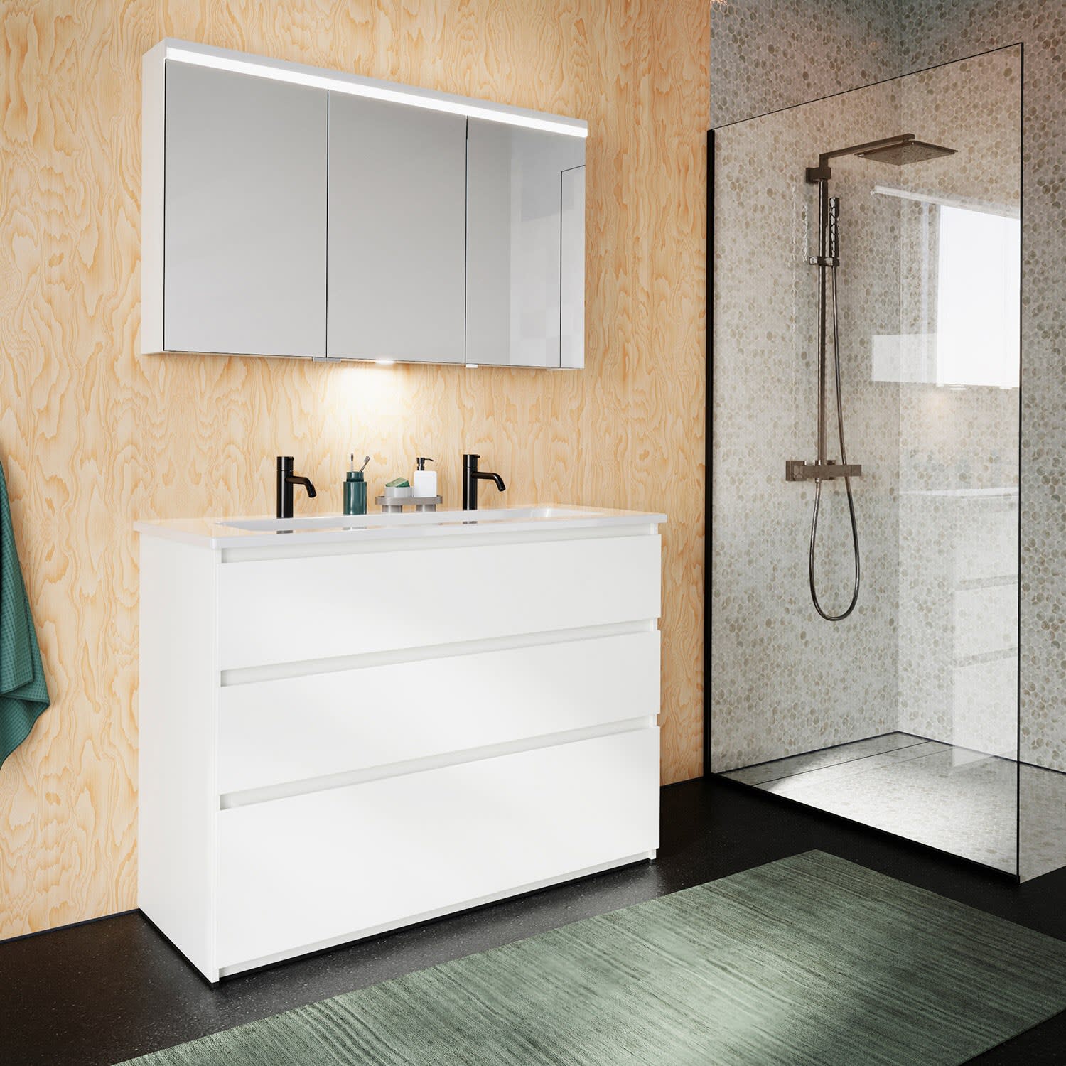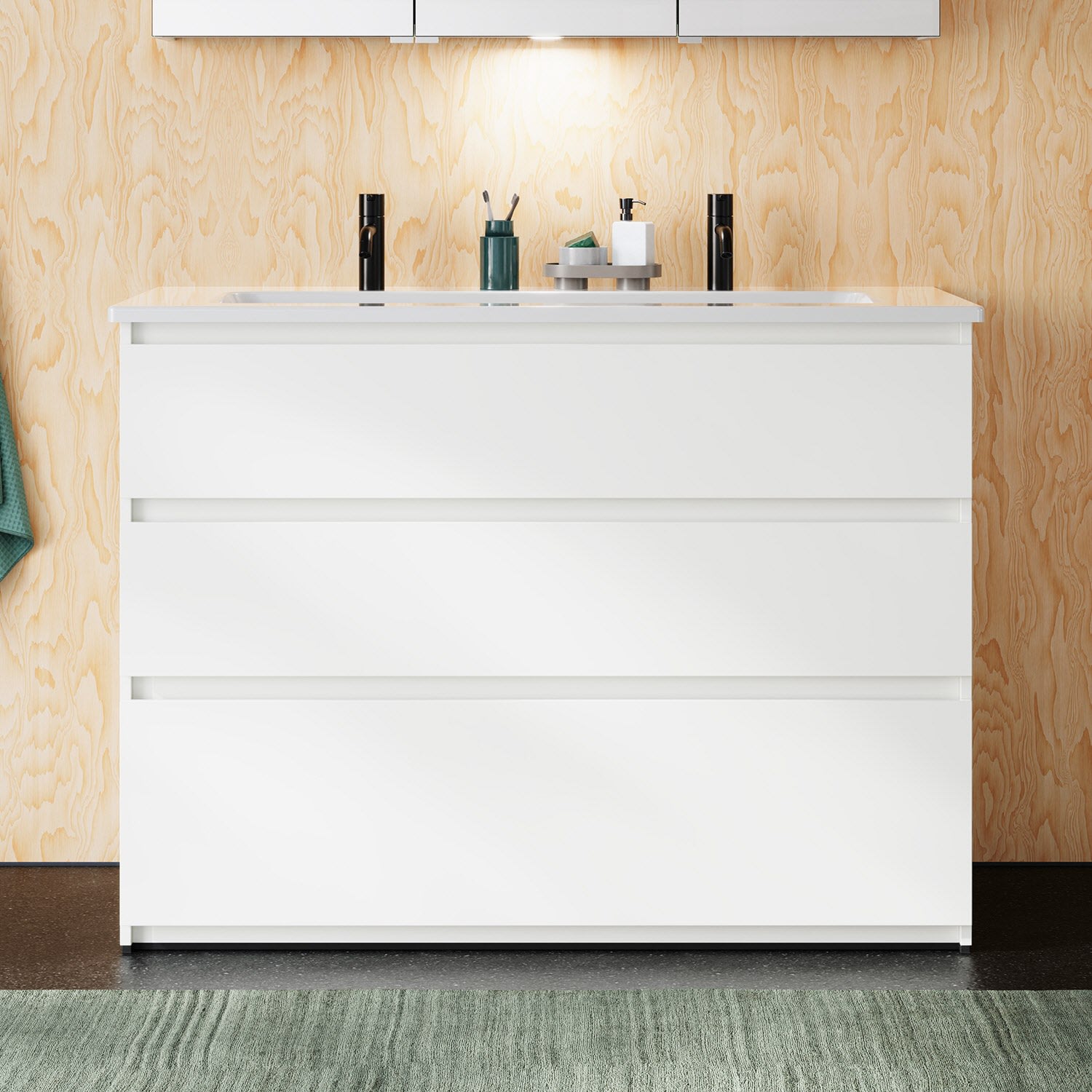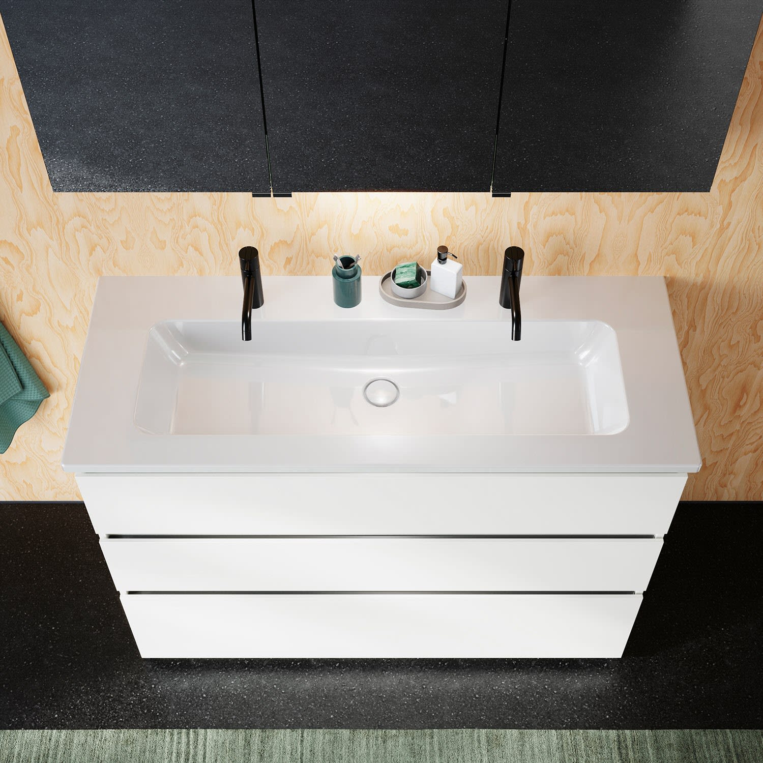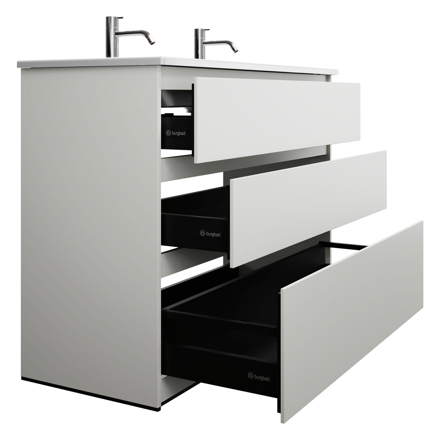 burgbad Lin20 Waschtischunterschrank mit Keramik-Waschtisch 123 cm, 3 Auszüge
