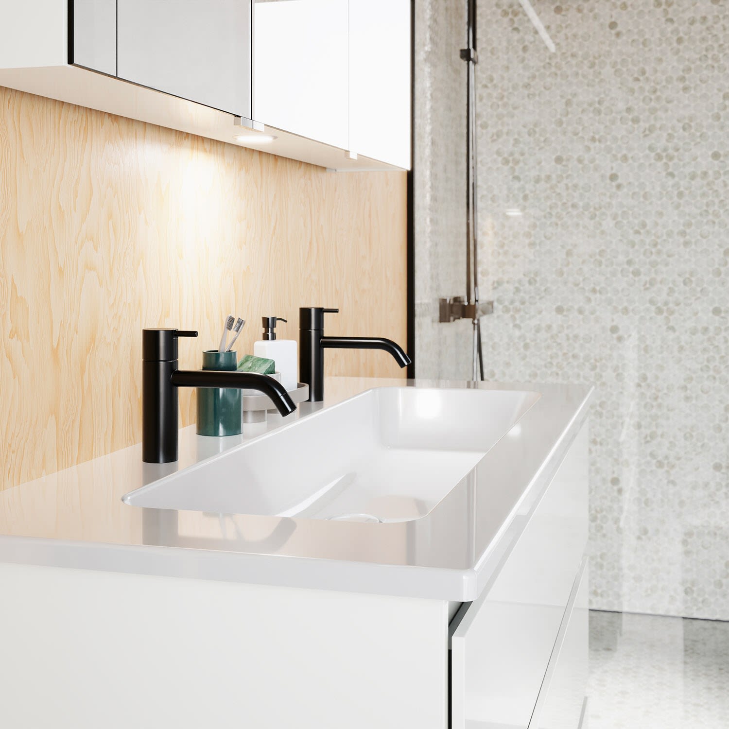 burgbad Lin20 Waschtischunterschrank mit Keramik-Waschtisch 123 cm, 3 Auszüge