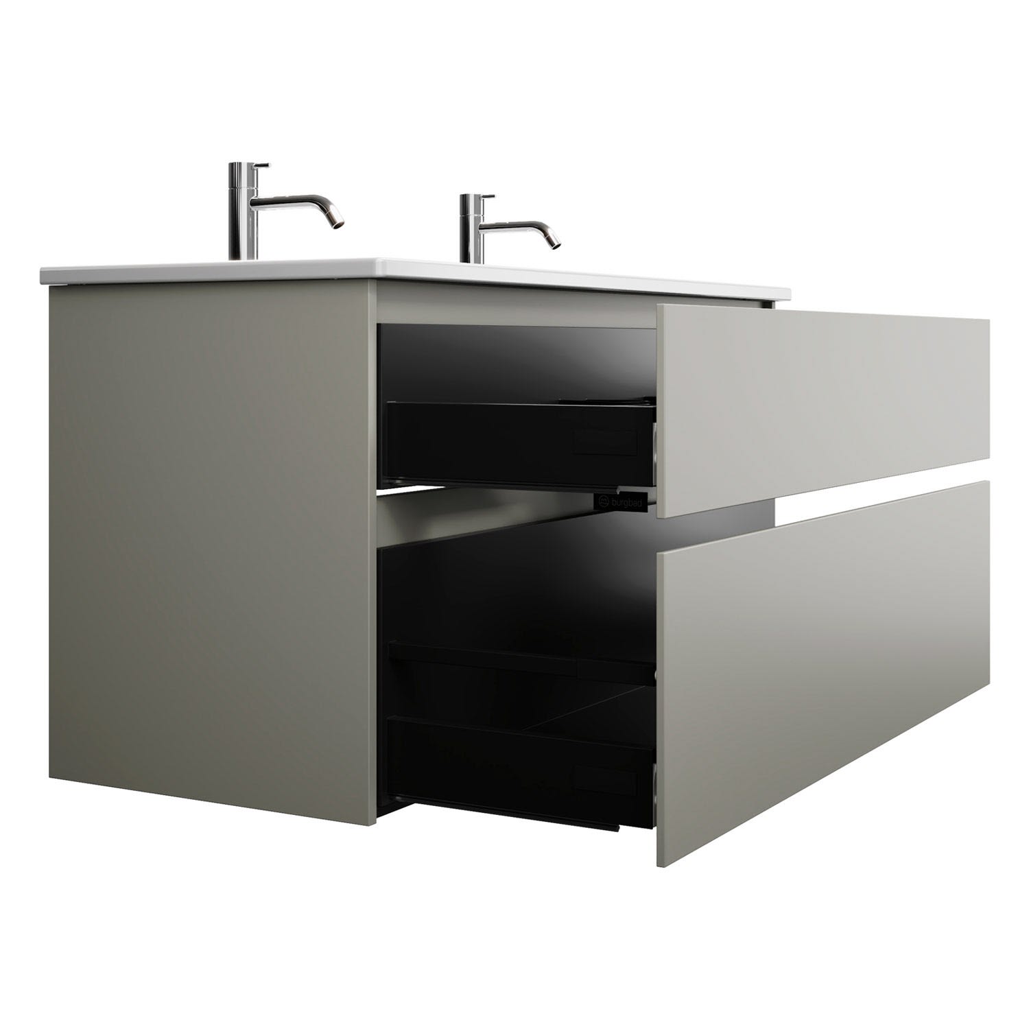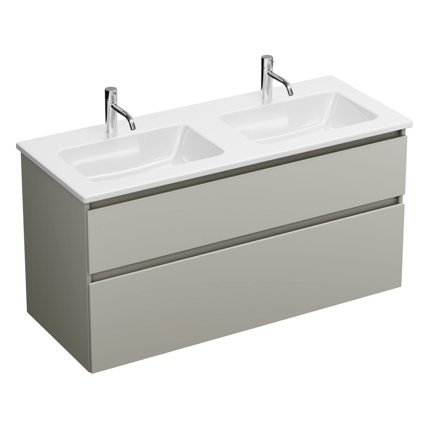 burgbad Lin20 Waschtischunterschrank mit Keramik-Doppelwaschtisch 123 cm, 2 Auszüge