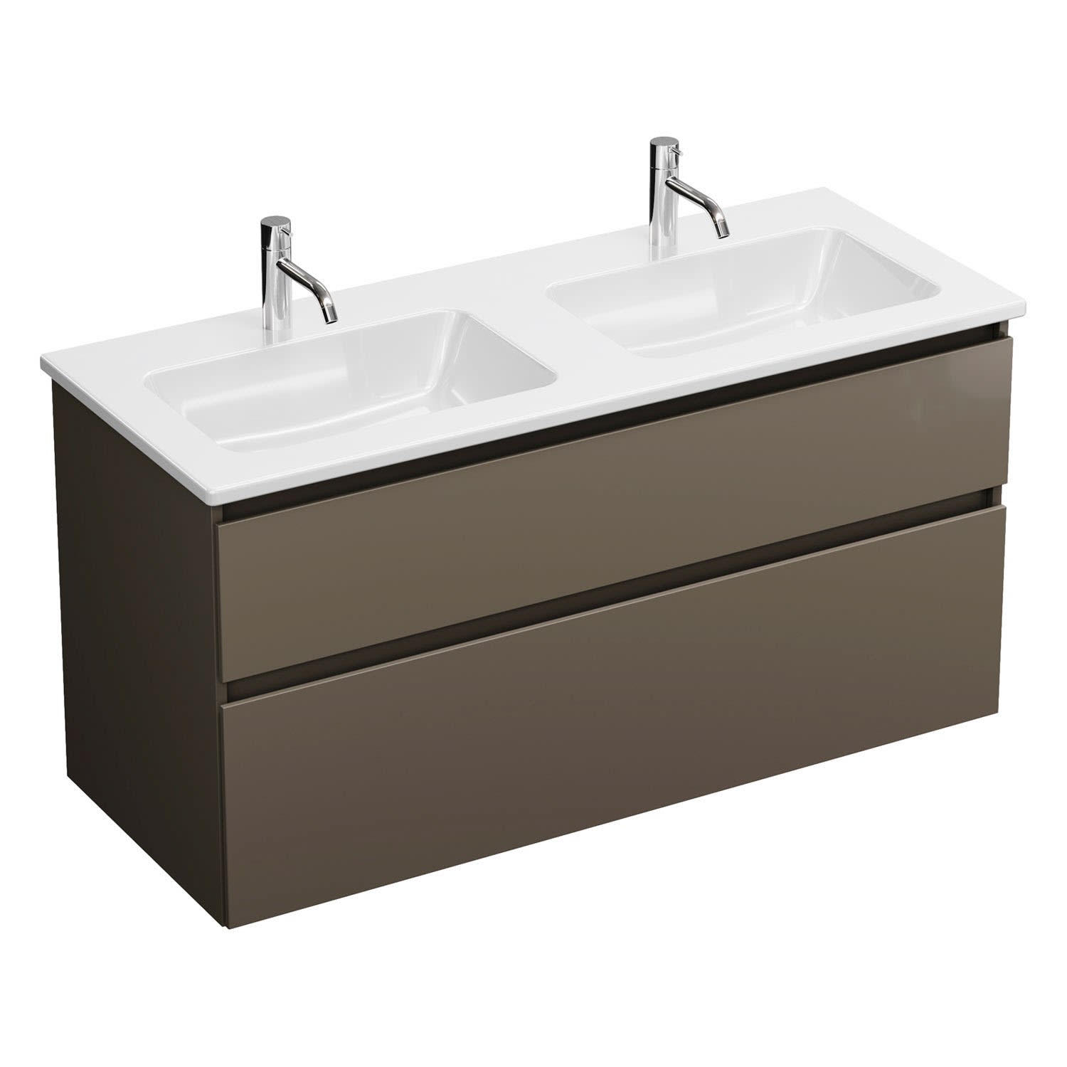 burgbad Lin20 Waschtischunterschrank mit Keramik-Doppelwaschtisch 123 cm, 2 Auszüge