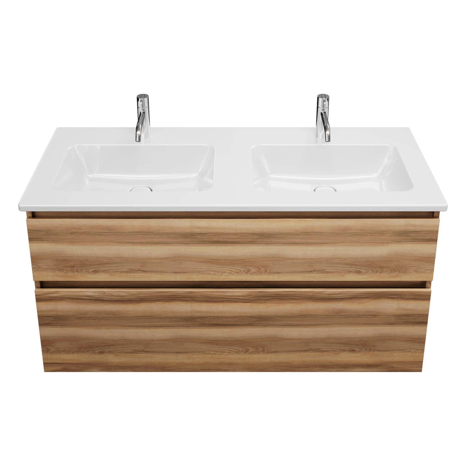 burgbad Lin20 Waschtischunterschrank mit Keramik-Doppelwaschtisch 123 cm, 2 Auszüge
