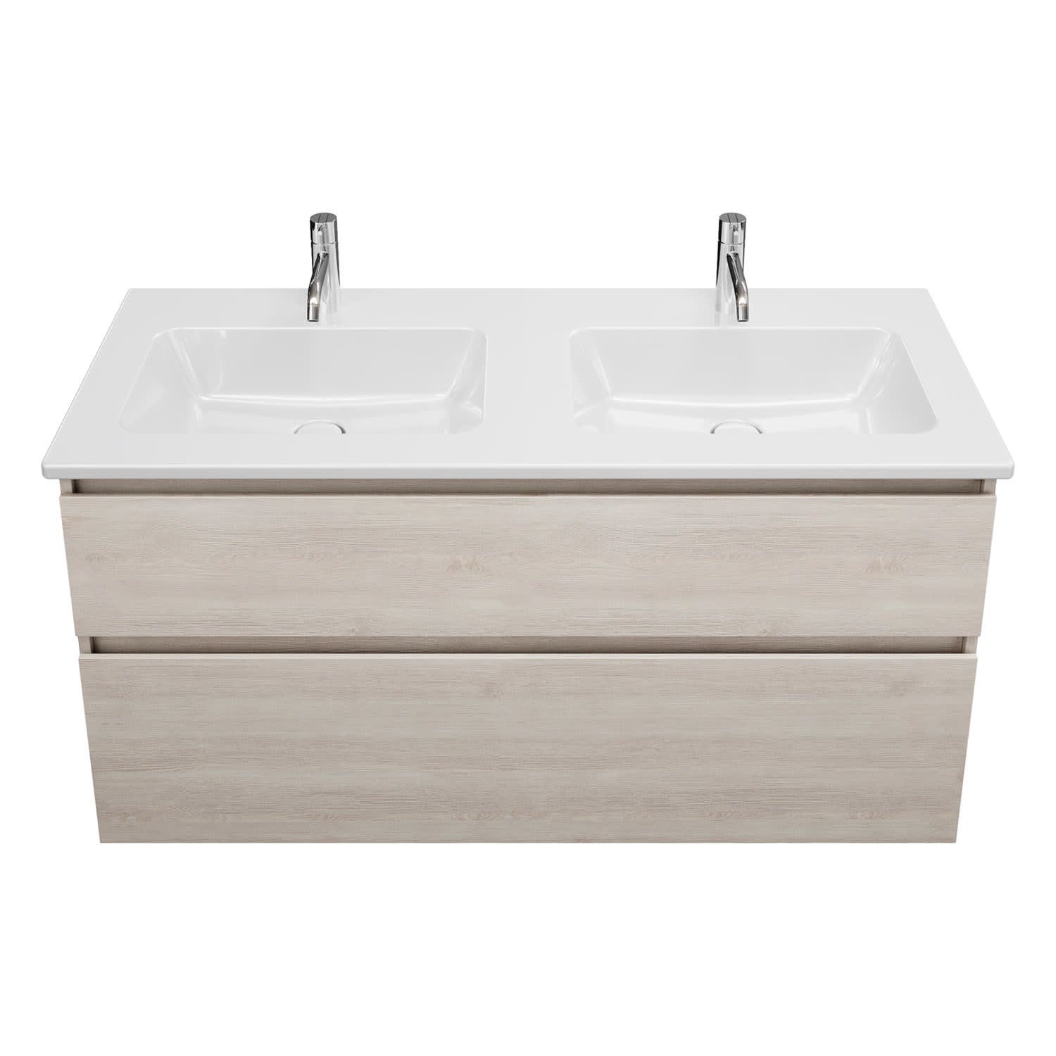burgbad Lin20 Waschtischunterschrank mit Keramik-Doppelwaschtisch 123 cm, 2 Auszüge