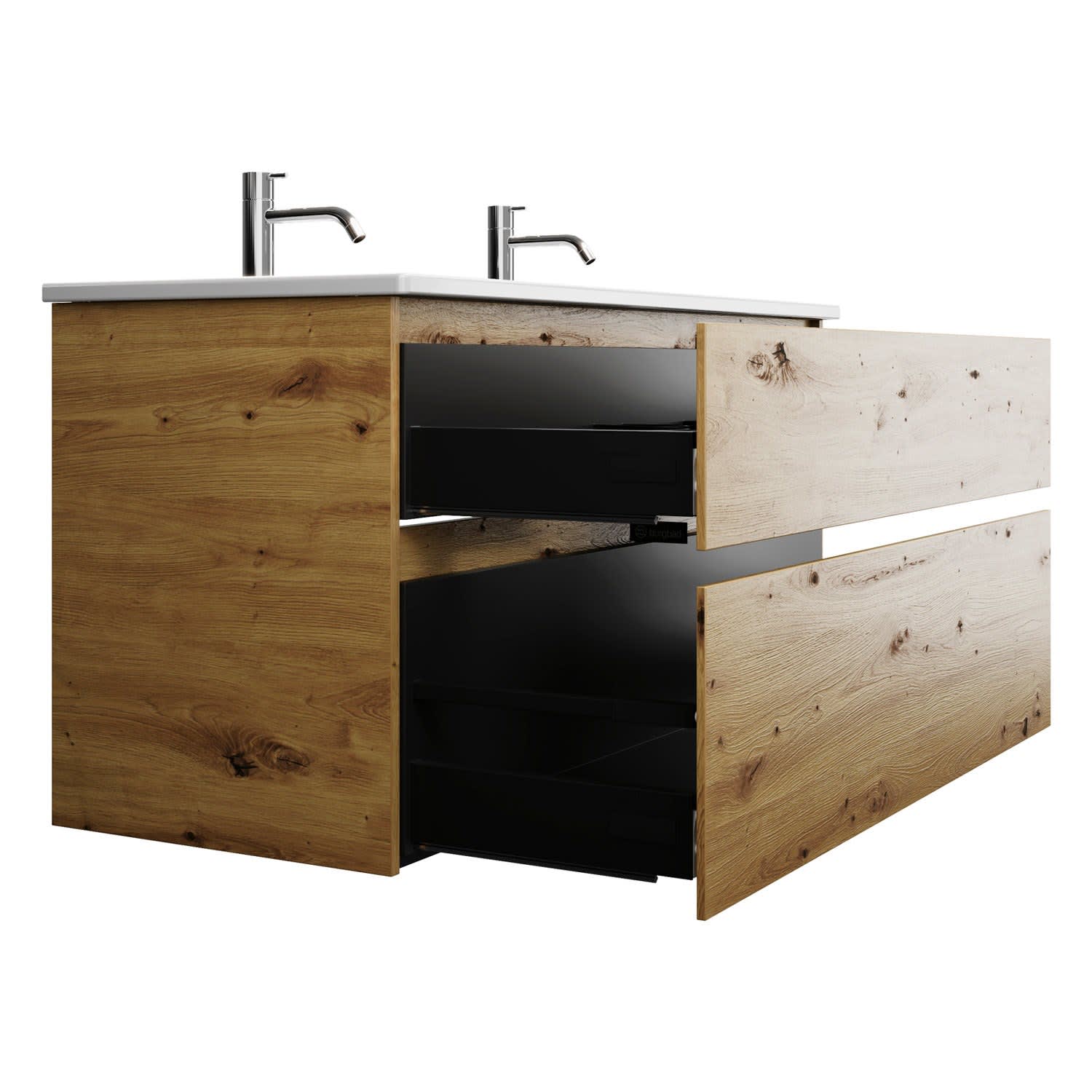 burgbad Lin20 Waschtischunterschrank mit Keramik-Doppelwaschtisch 123 cm, 2 Auszüge