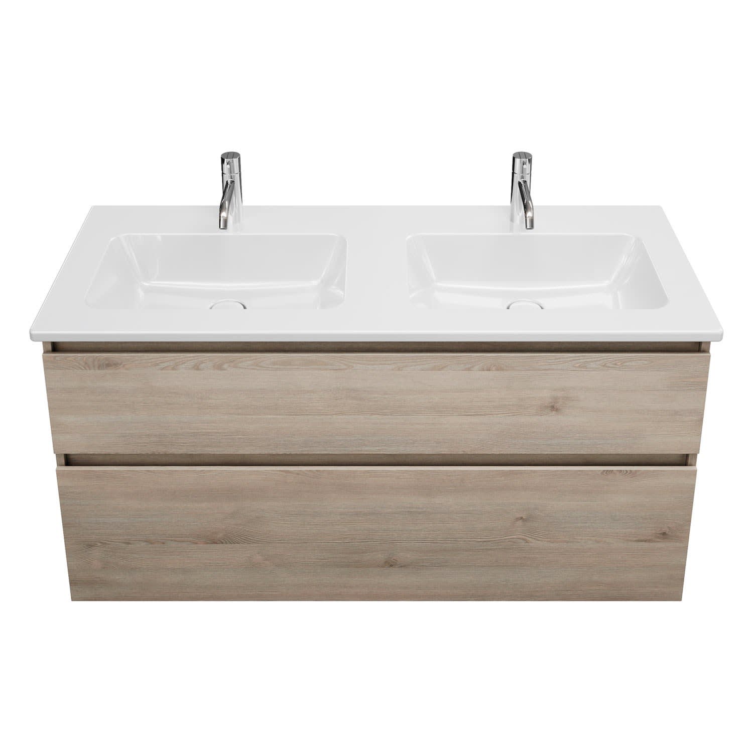 burgbad Lin20 Waschtischunterschrank mit Keramik-Doppelwaschtisch 123 cm, 2 Auszüge