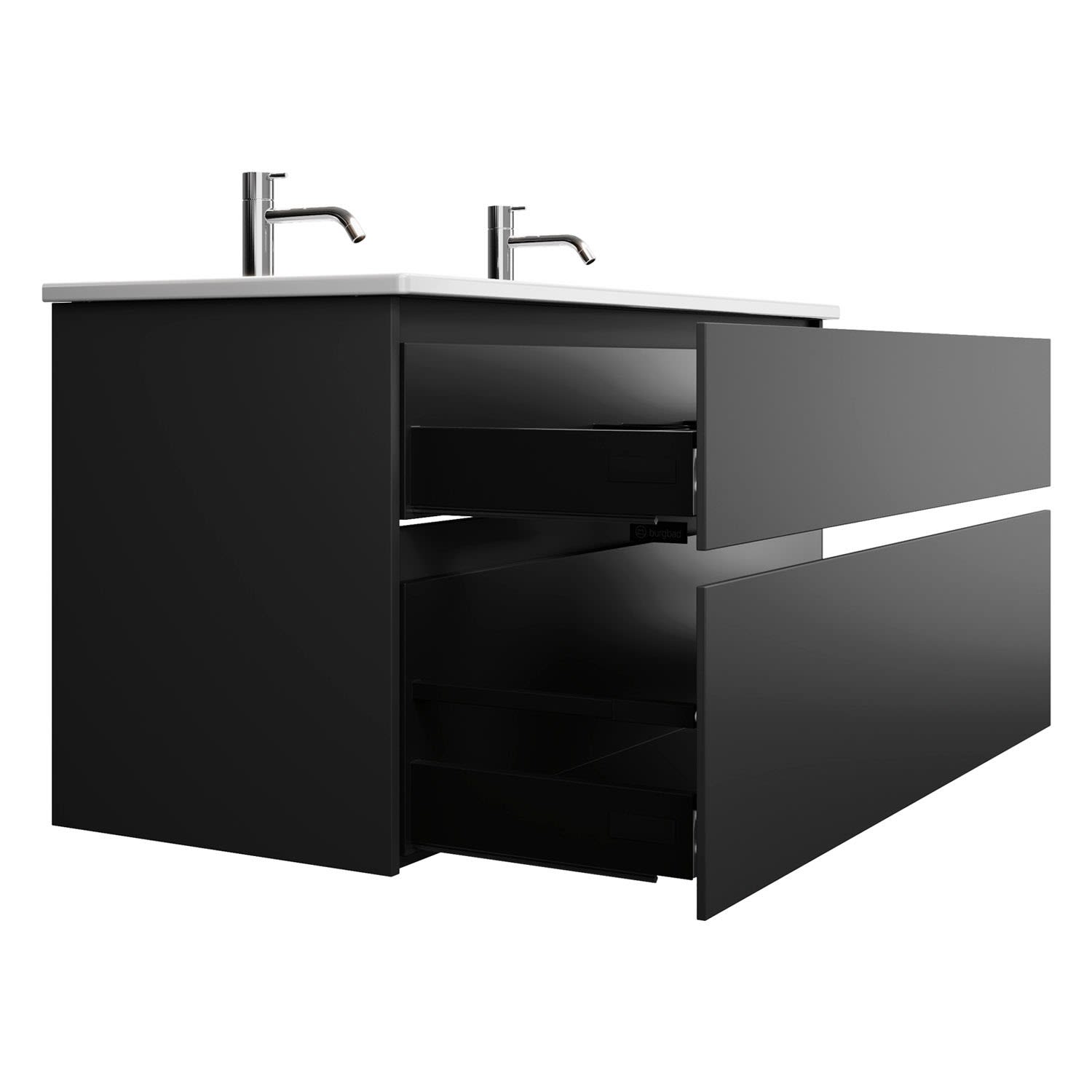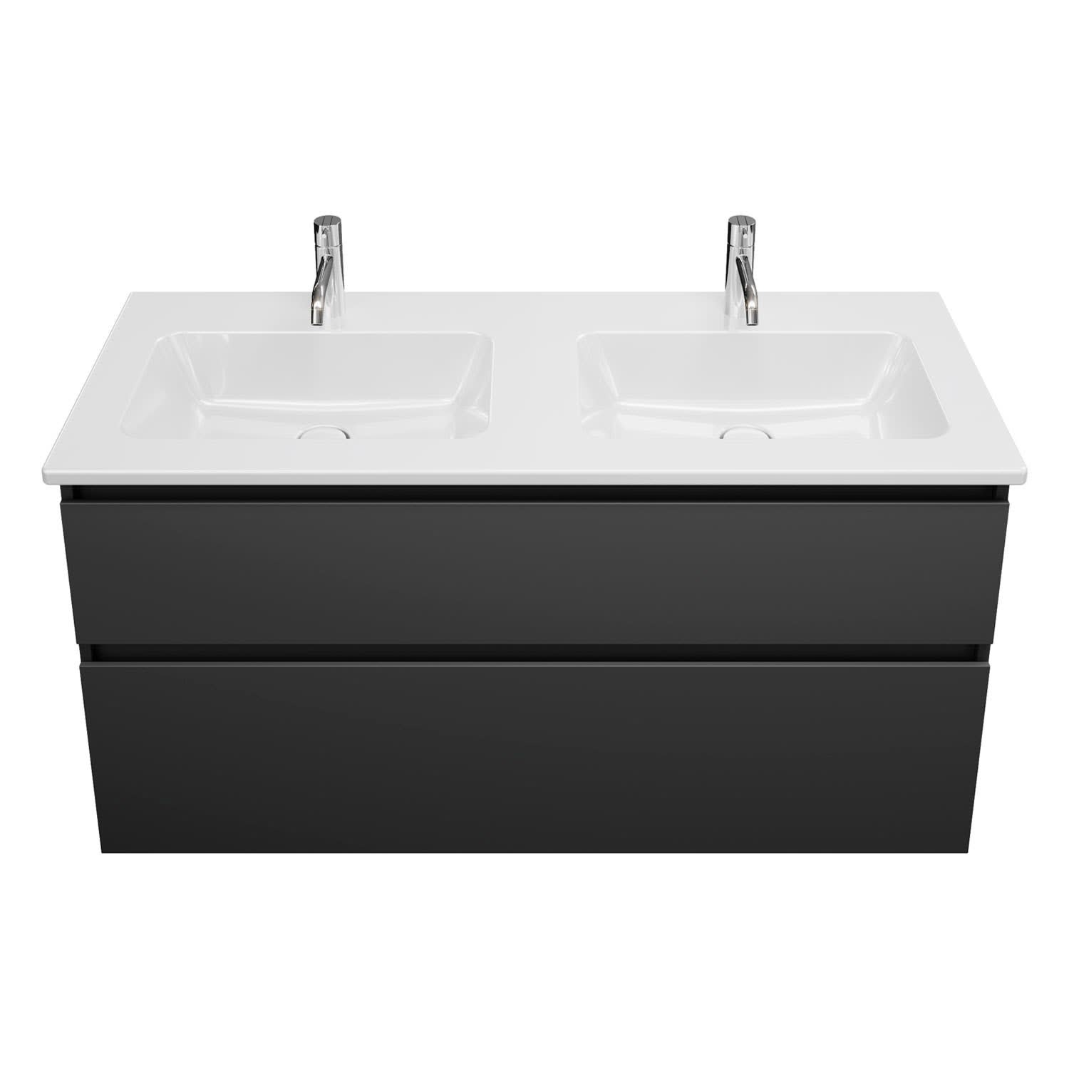 burgbad Lin20 Waschtischunterschrank mit Keramik-Doppelwaschtisch 123 cm, 2 Auszüge