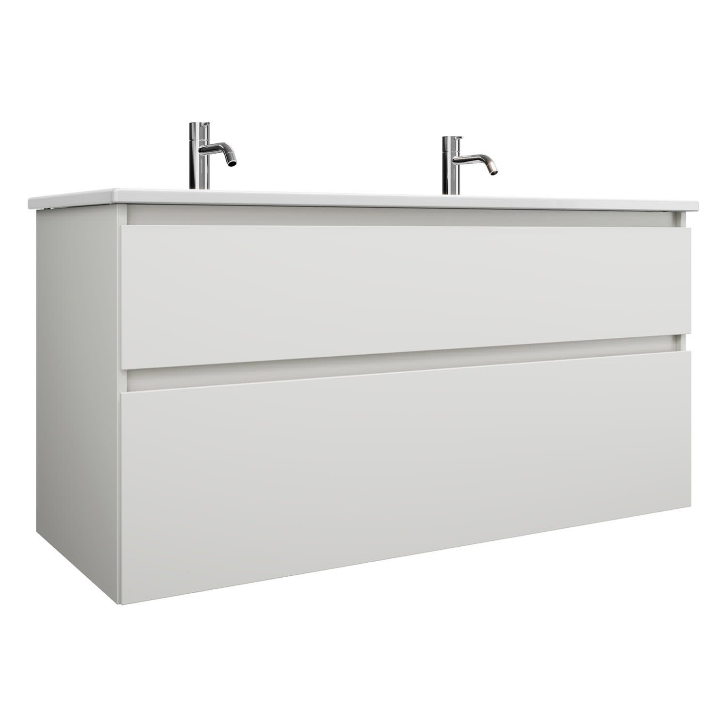 burgbad Lin20 Waschtischunterschrank mit Keramik-Doppelwaschtisch 123 cm, 2 Auszüge
