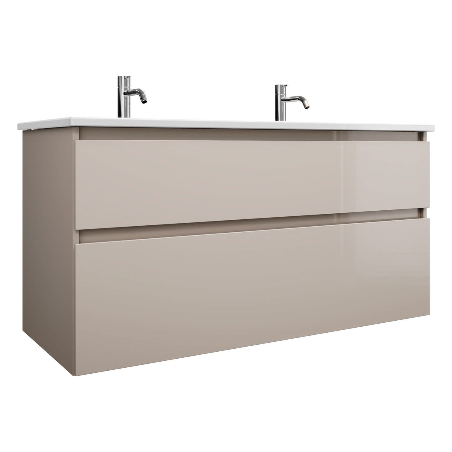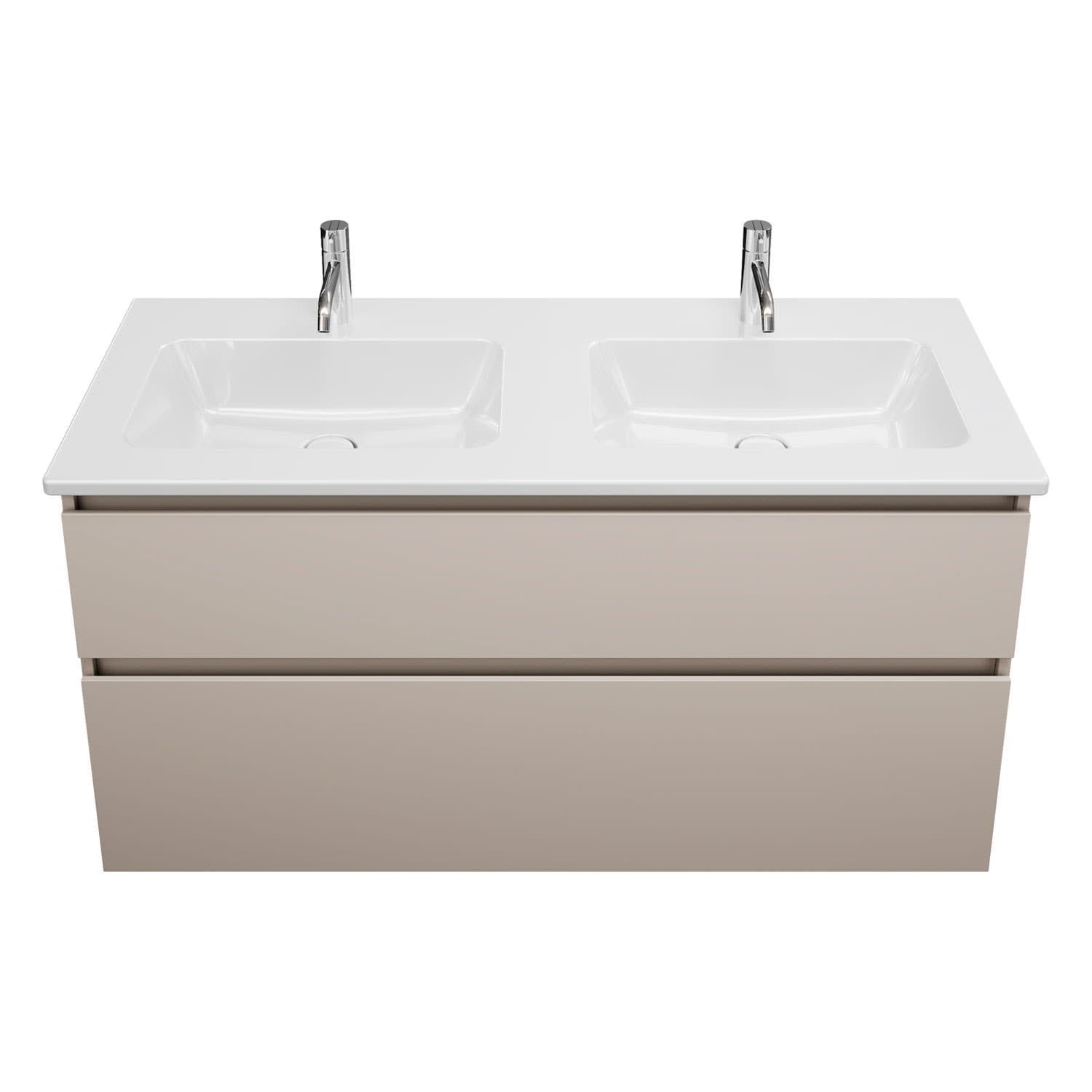 burgbad Lin20 Waschtischunterschrank mit Keramik-Doppelwaschtisch 123 cm, 2 Auszüge
