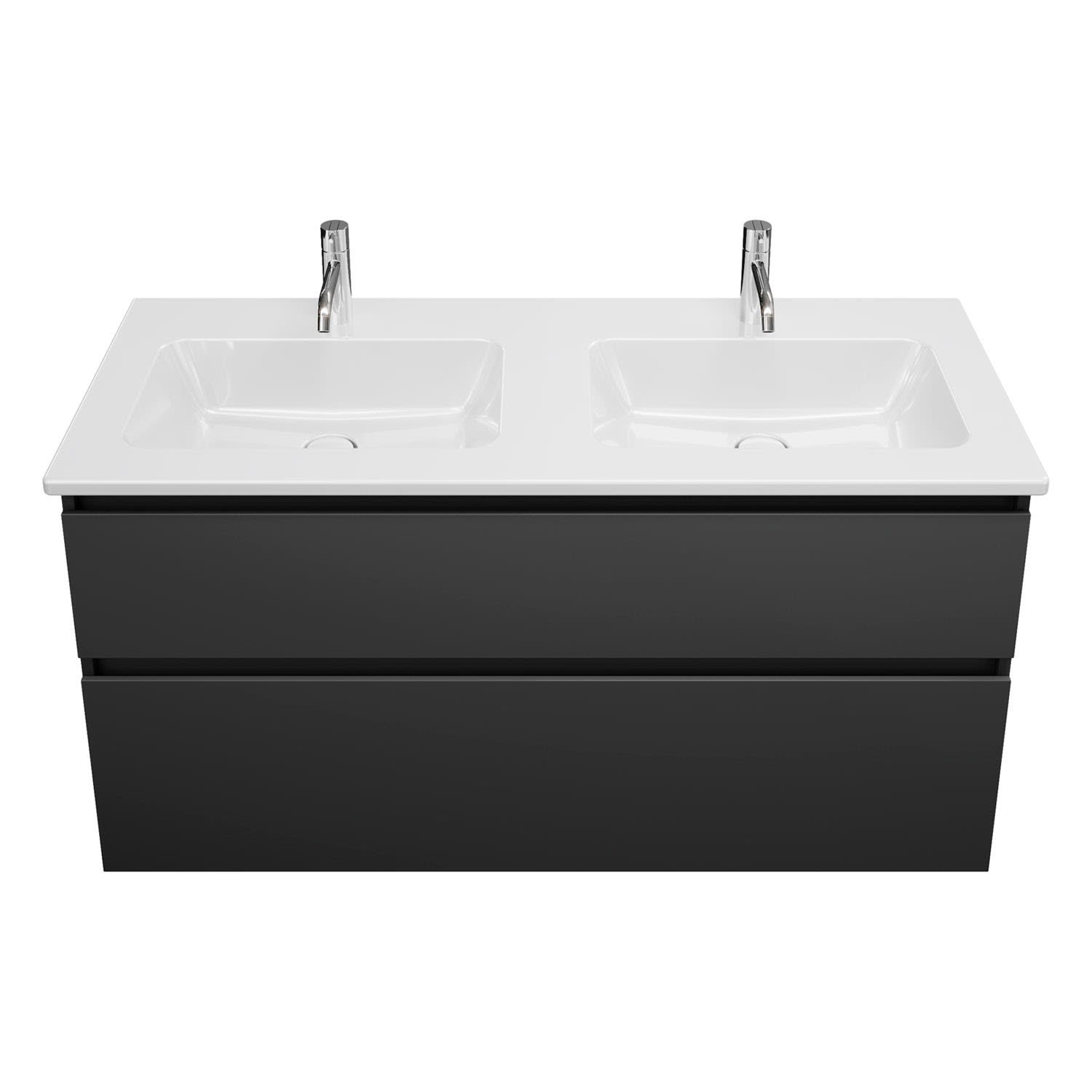 burgbad Lin20 Waschtischunterschrank mit Keramik-Doppelwaschtisch 123 cm, 2 Auszüge